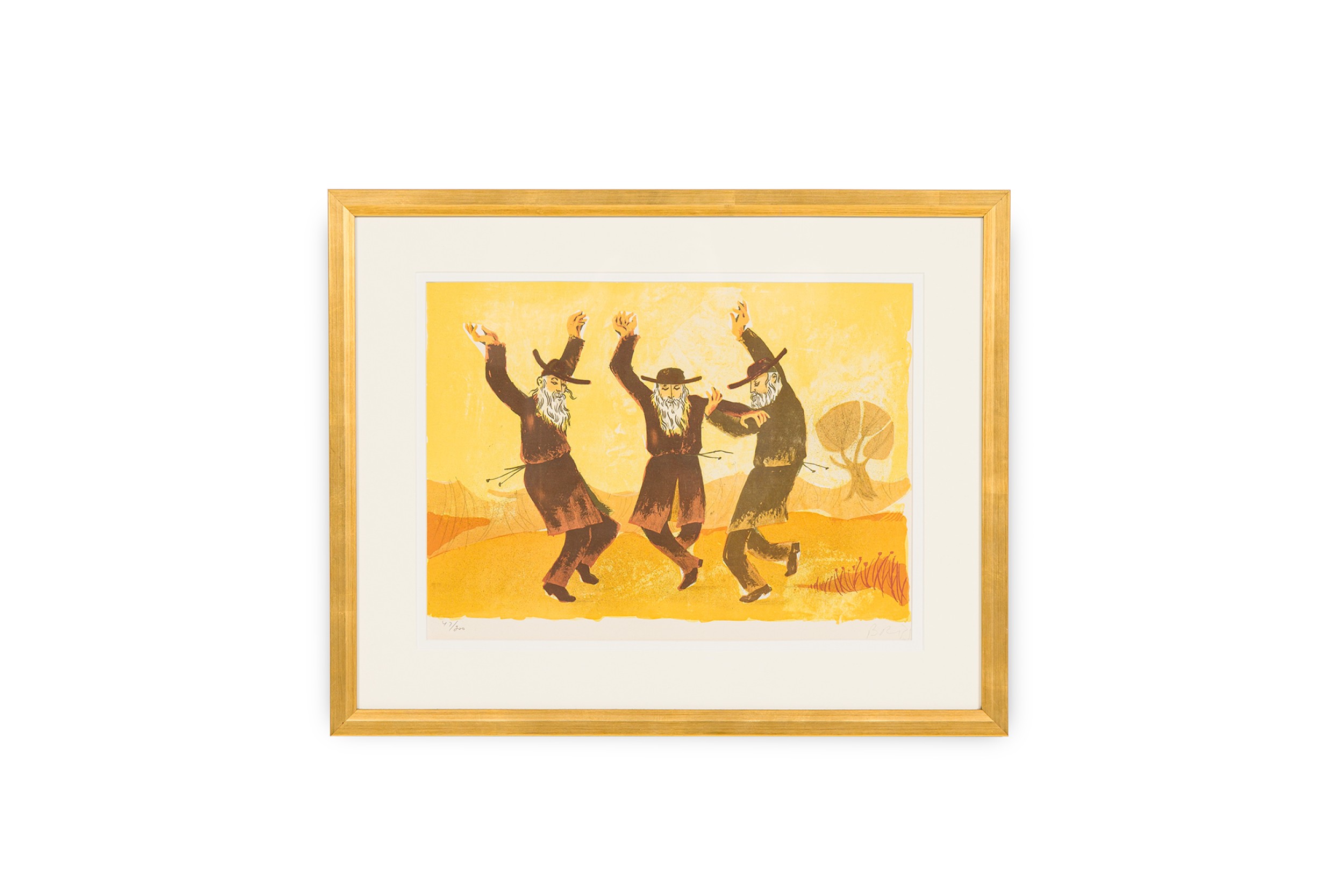 Vintage Serigraph of three Jewish men dancing in a beveled gilt frame (signed and numbered SAMI BRISS 24/200).