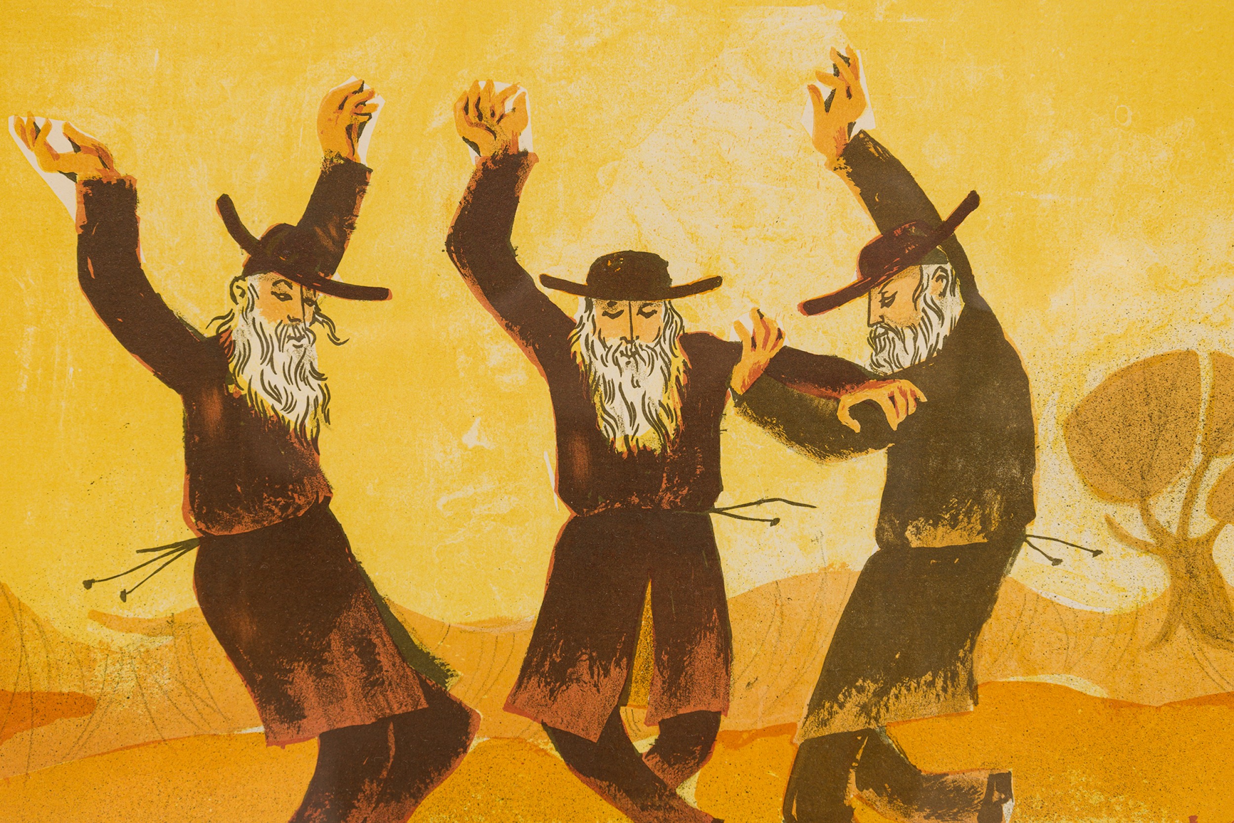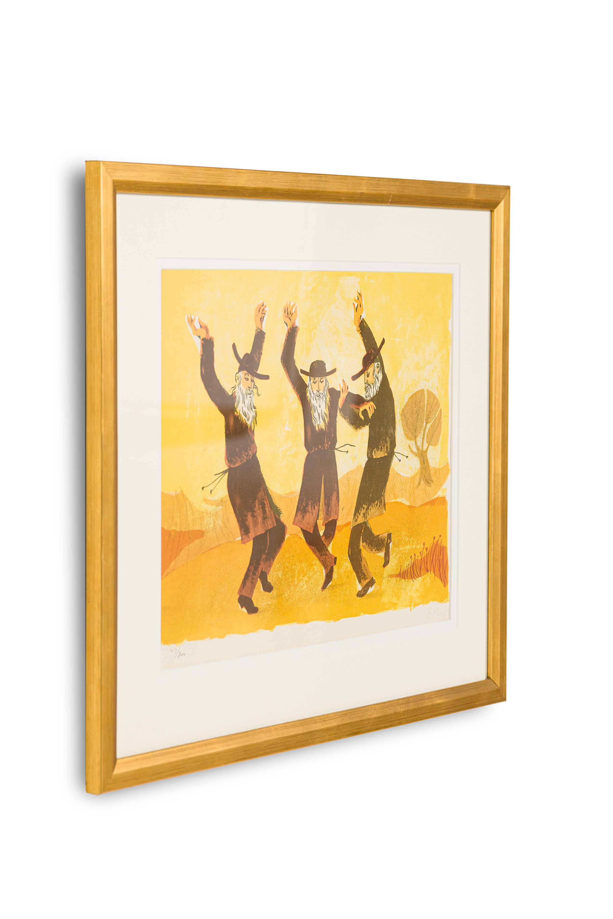 Vintage Serigraph of three Jewish men dancing in a beveled gilt frame (signed and numbered SAMI BRISS 24/200)