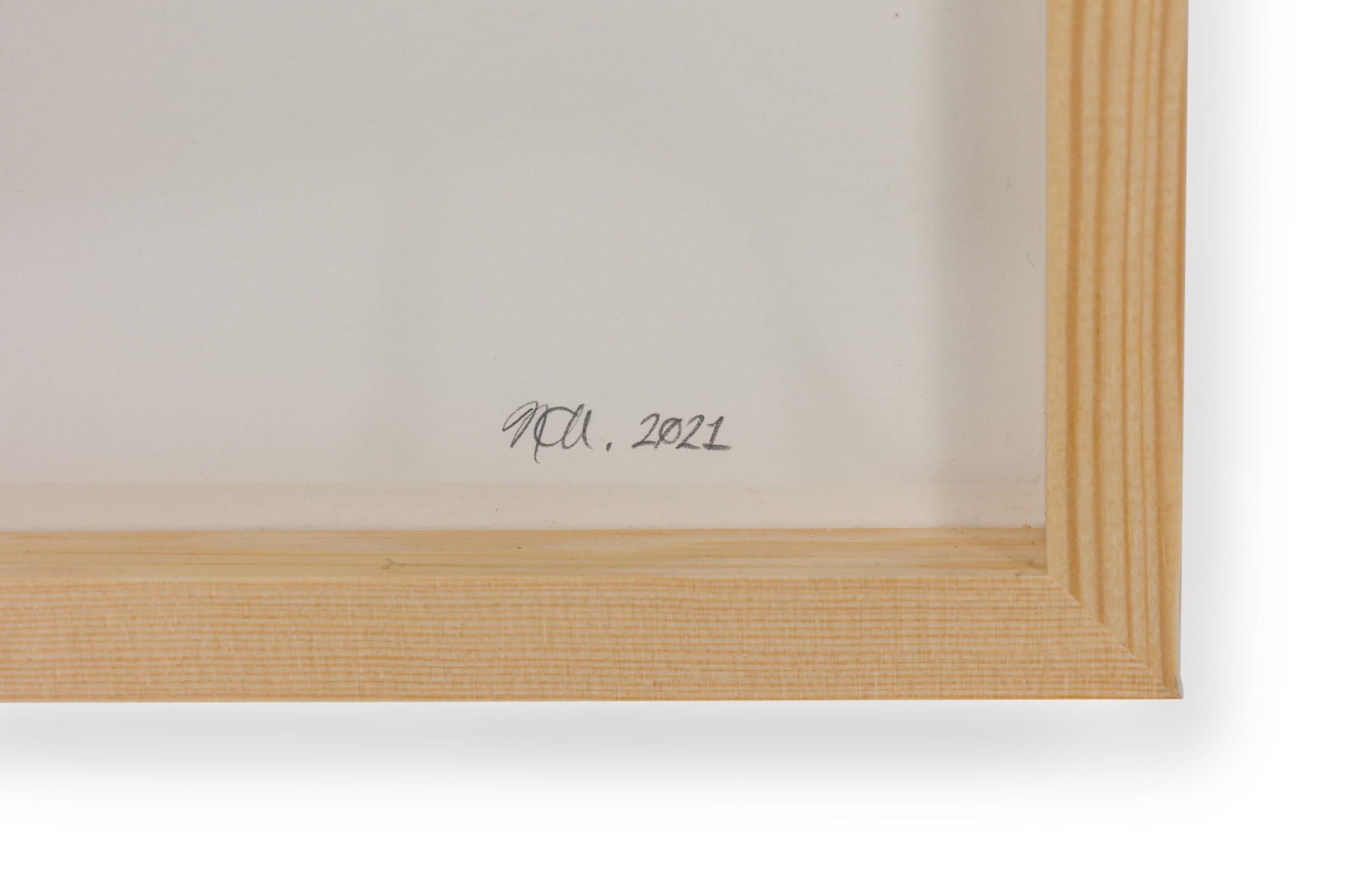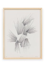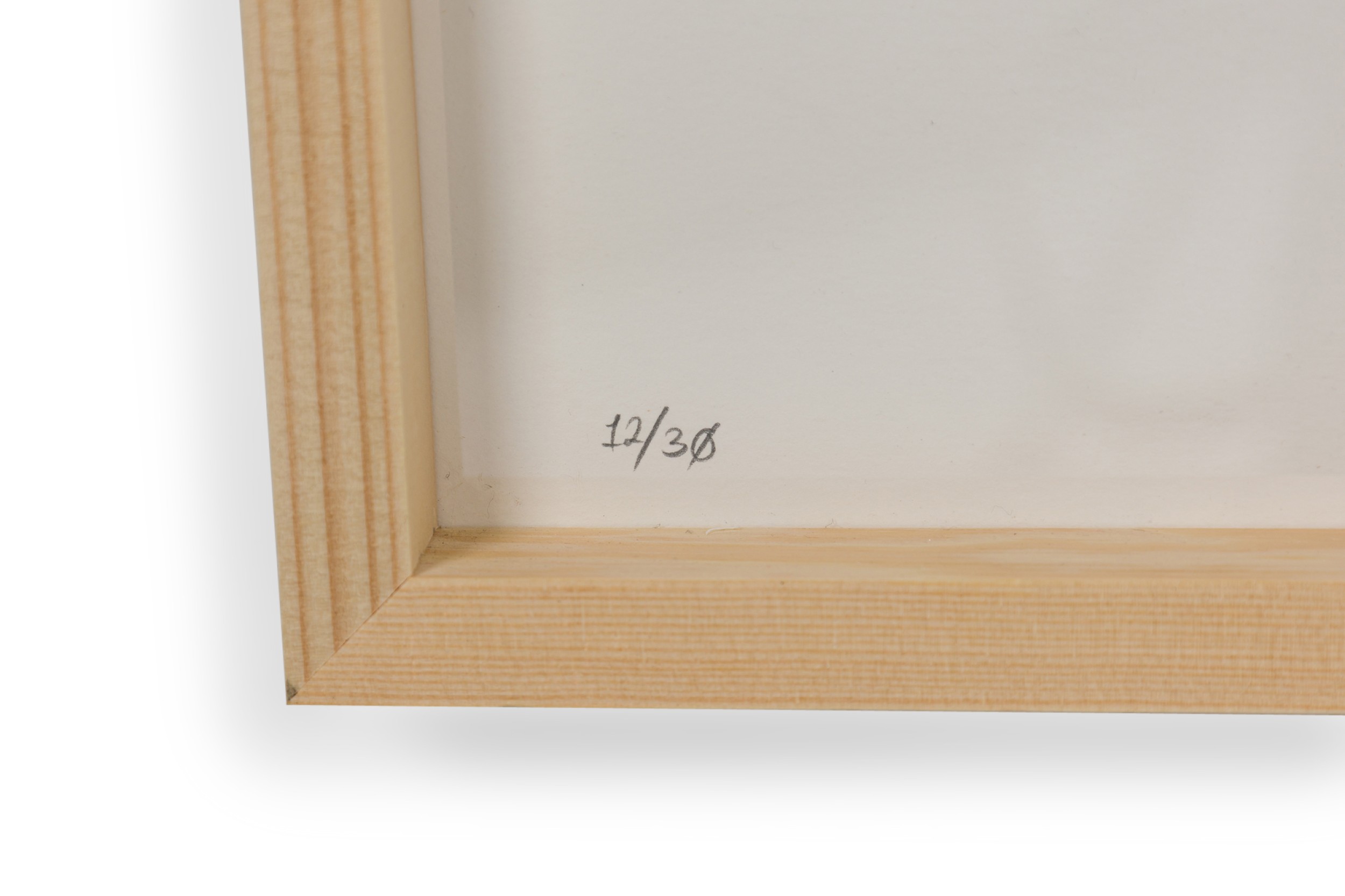 Contemporary abstract ink on paper drawing of multi-directional lines in a natural wooden frame (Edition: 12/30)(NATALE CREE ADGNOT).