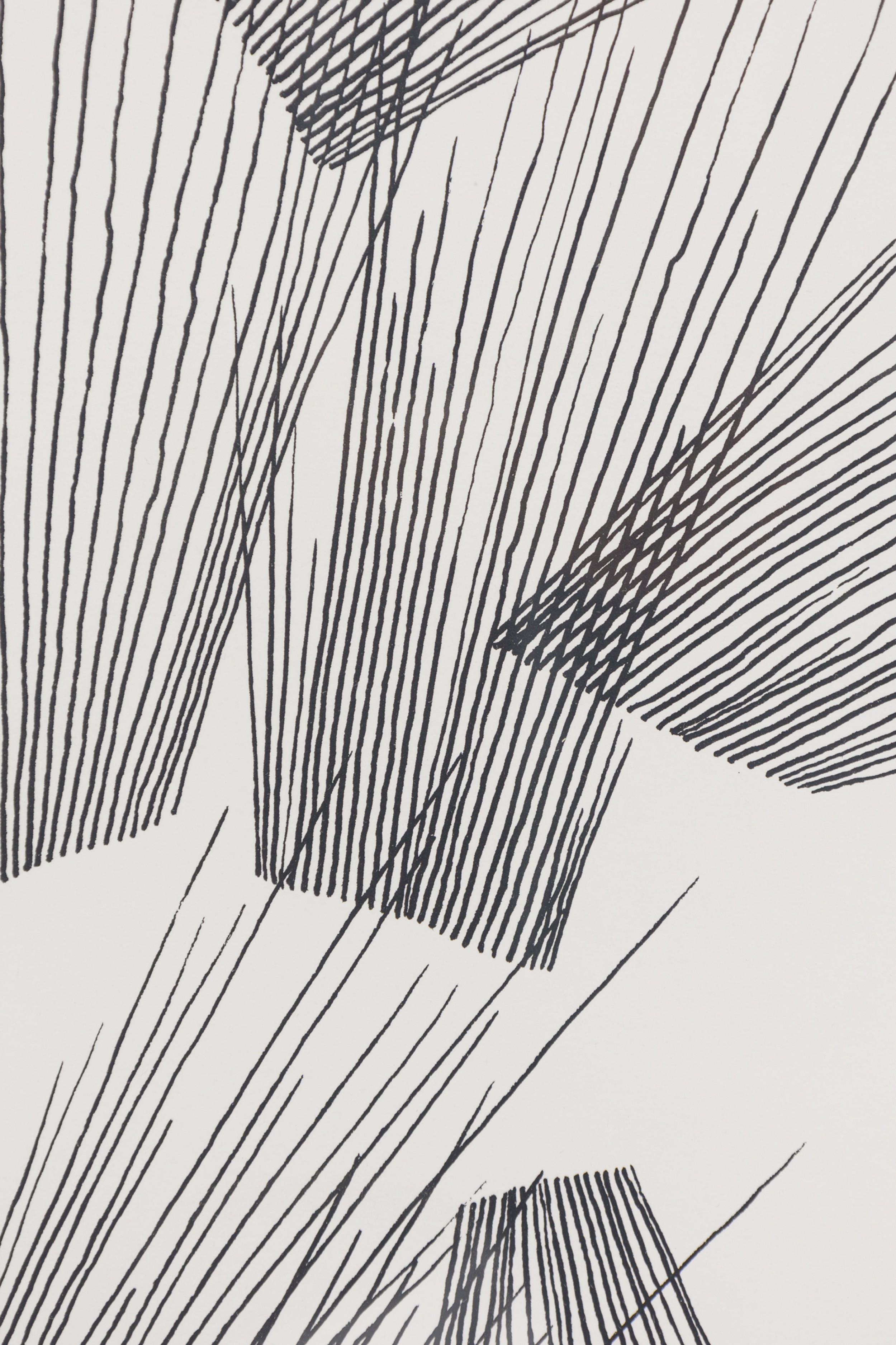 Contemporary abstract ink on paper drawing of multi-directional lines in a natural wooden frame (Edition: 12/30)(NATALE CREE ADGNOT)