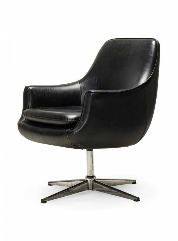 Style: Mid-Century Materials & Techniques: Chrome, leather, metal, upholstered Category: Seating, Office/Library Good; Wear consistent with age and use