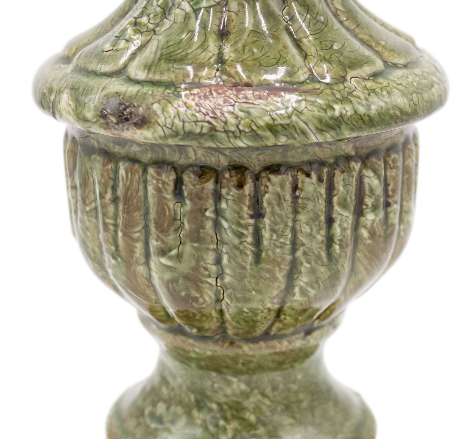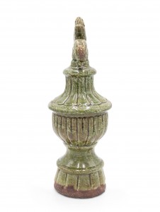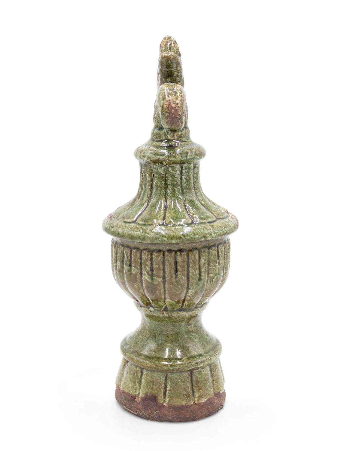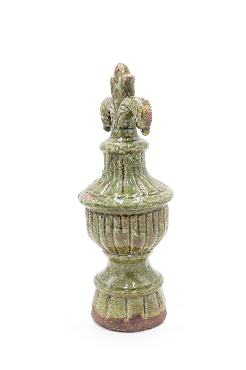 PAIR of Italian Neo-classic-style (modern) green glazed terra-cotta ornaments with a fleur-de-lis finial top (PRICED AS PAIR)