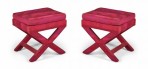 Pair of American Contemporary Magenta Upholstered X-Base Tufted Benches (manner of Billy Baldwin)