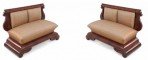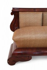Pair of American Empire Crotch Mahogany Veneer Upholstered Window Seats