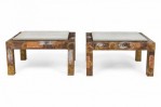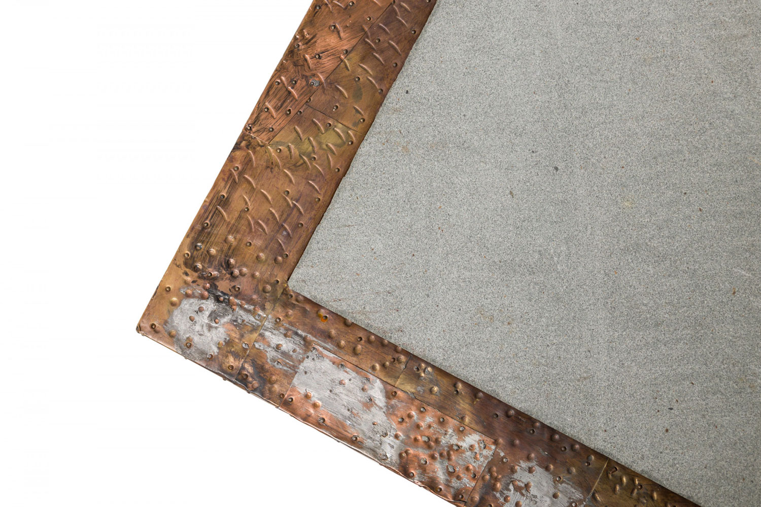 Pair of American Mid-Century Mixed Metal Clad Slate Top Coffee Tables (manner of Paul Evans)