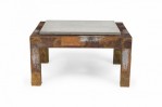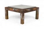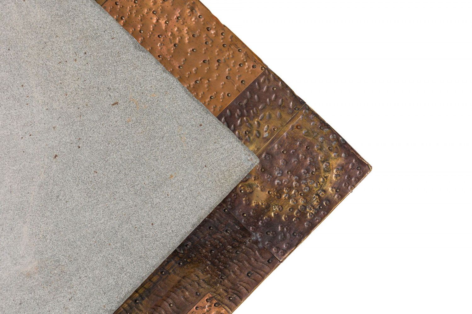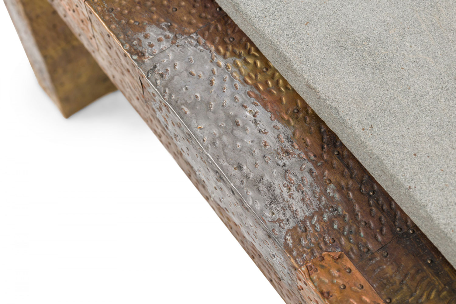 PAIR of American Mid-Century square coffee / cocktail tables with textured metal clad frames and pronounced light gray slate tops. (manner of PAUL EVANS)(PRICED AS PAIR)
