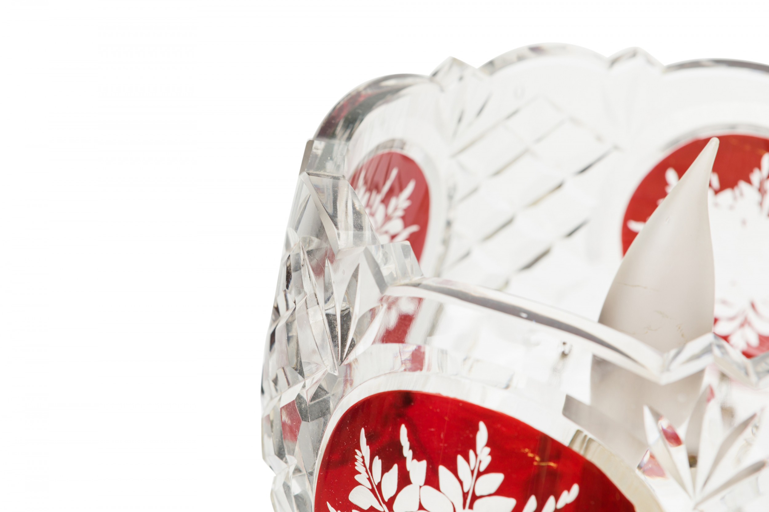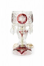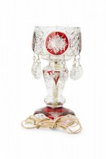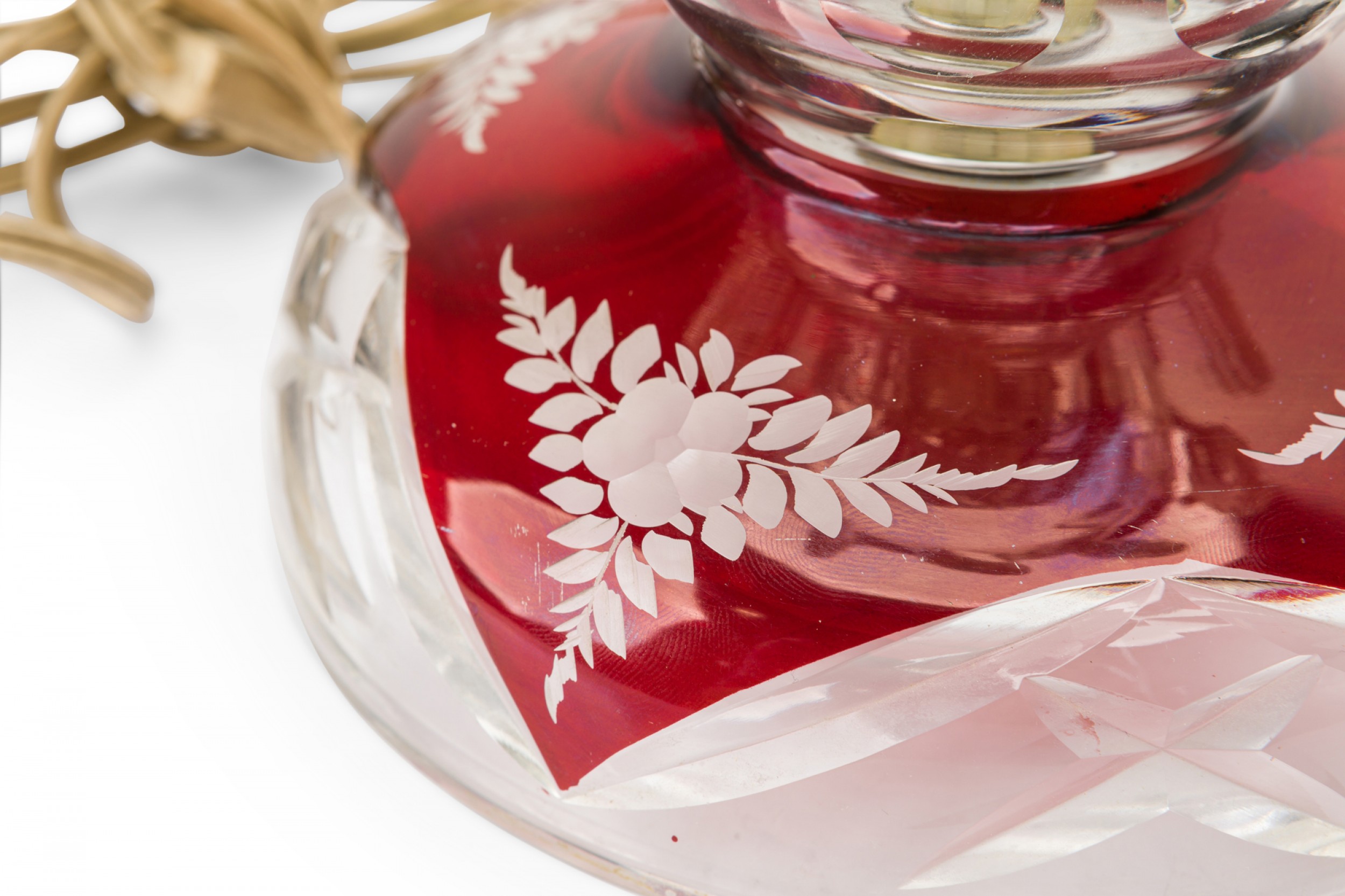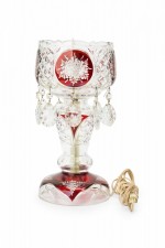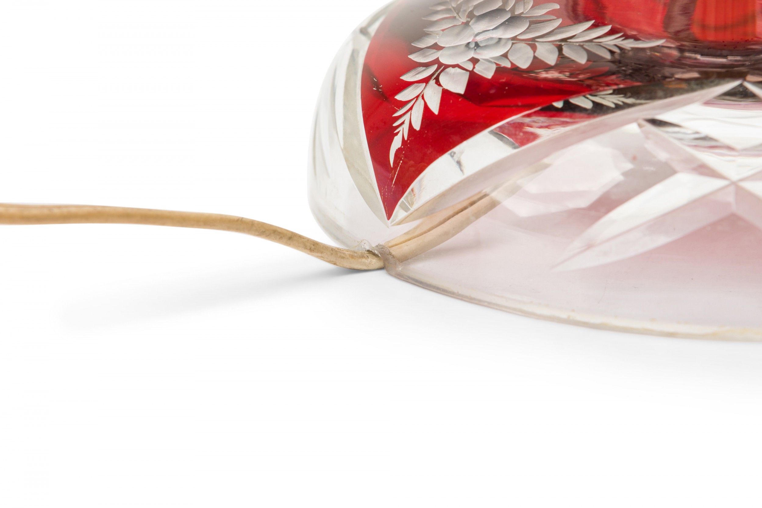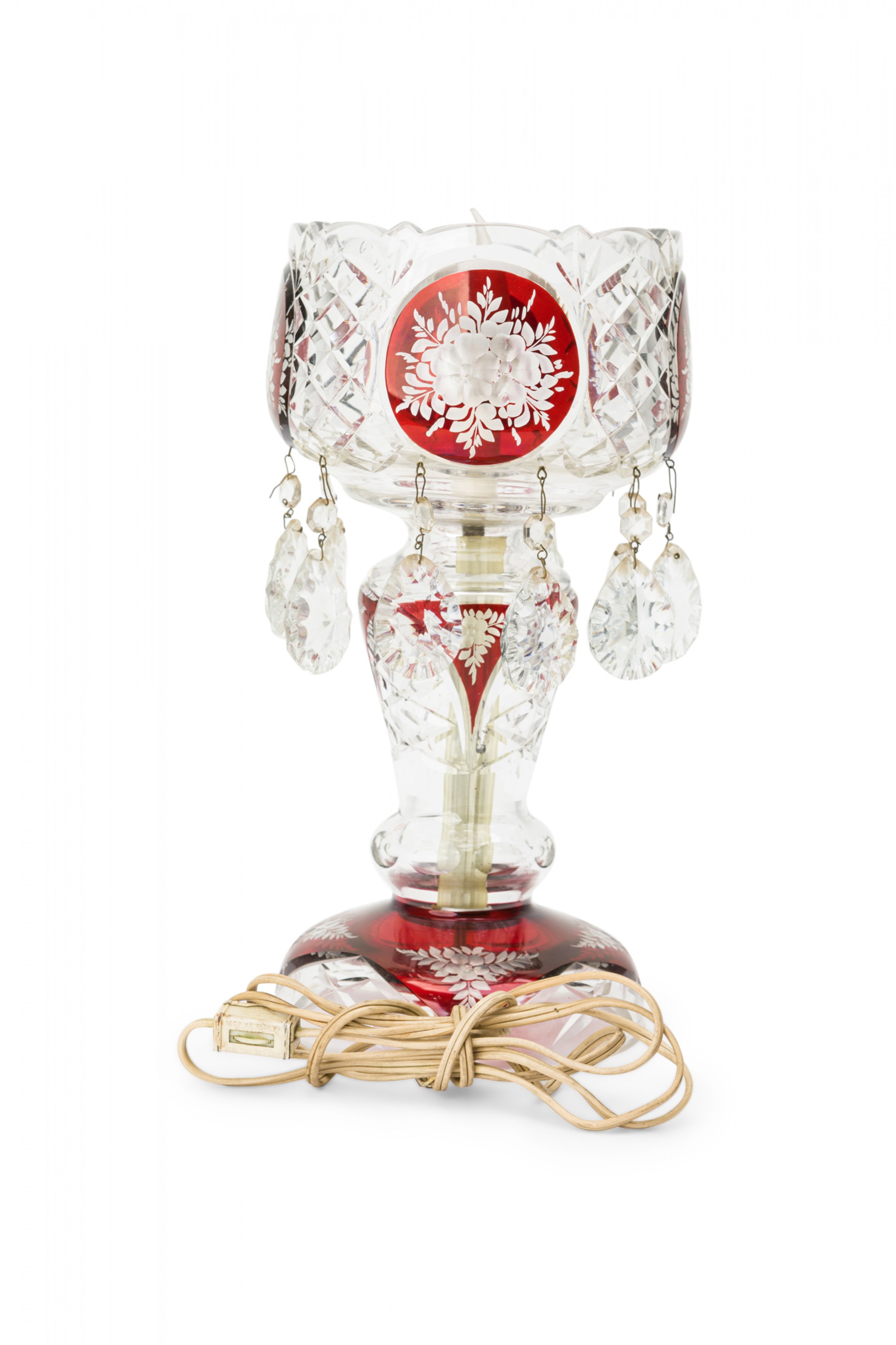 Pair of American Victorian Style Red and Clear Cut Crystal and Glass Table Lamps