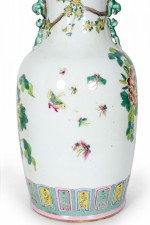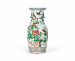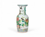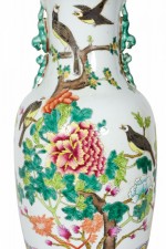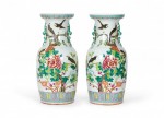 Pair of Antique Chinese Branches and Birds Patterned Porcelain Rouleau Form Vases