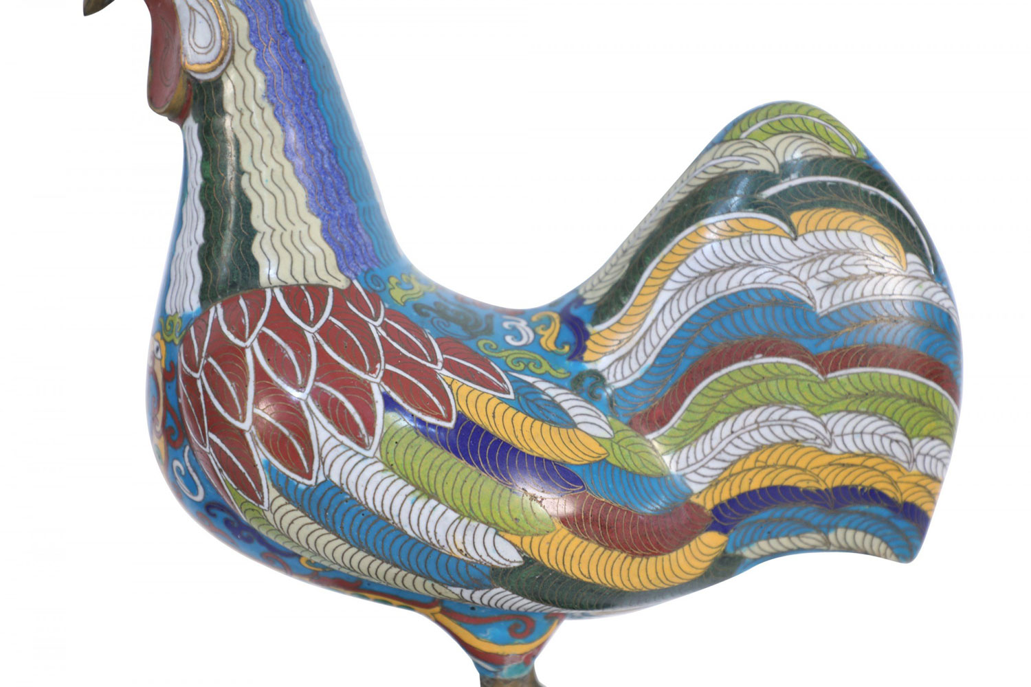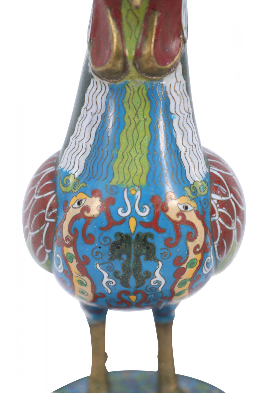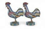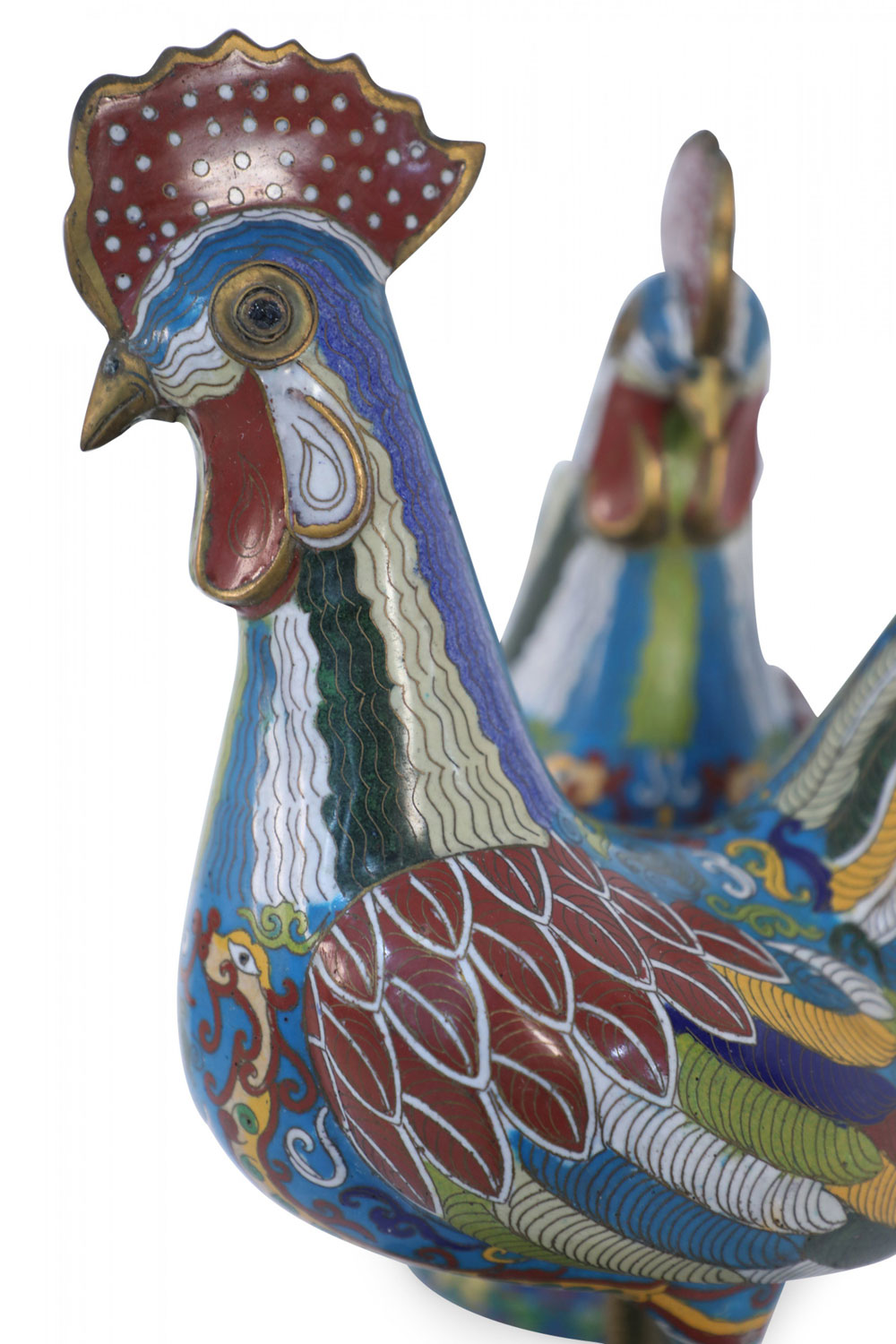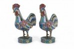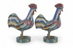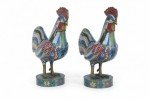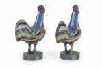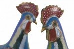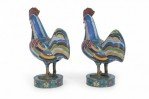 Pair of Antique Chinese Multi-Colored Cloisonne Rooster Sculptures