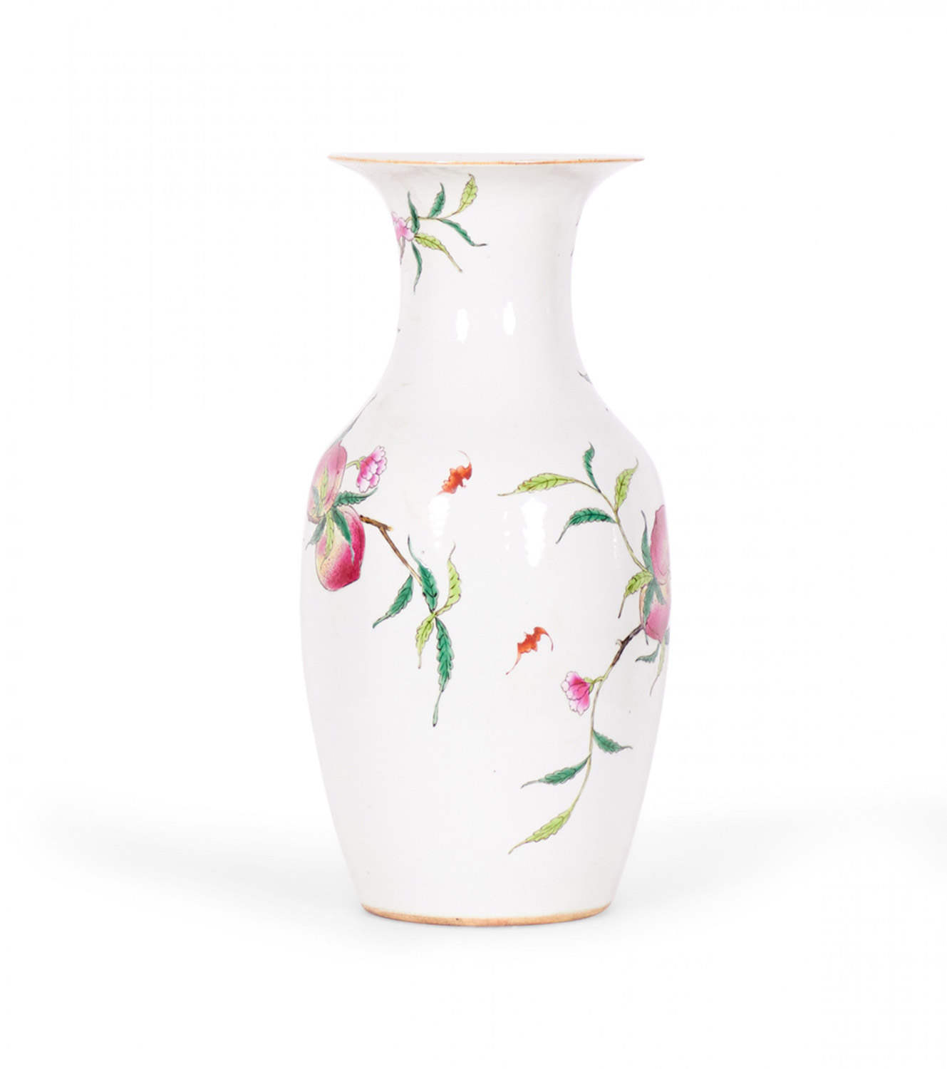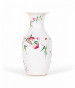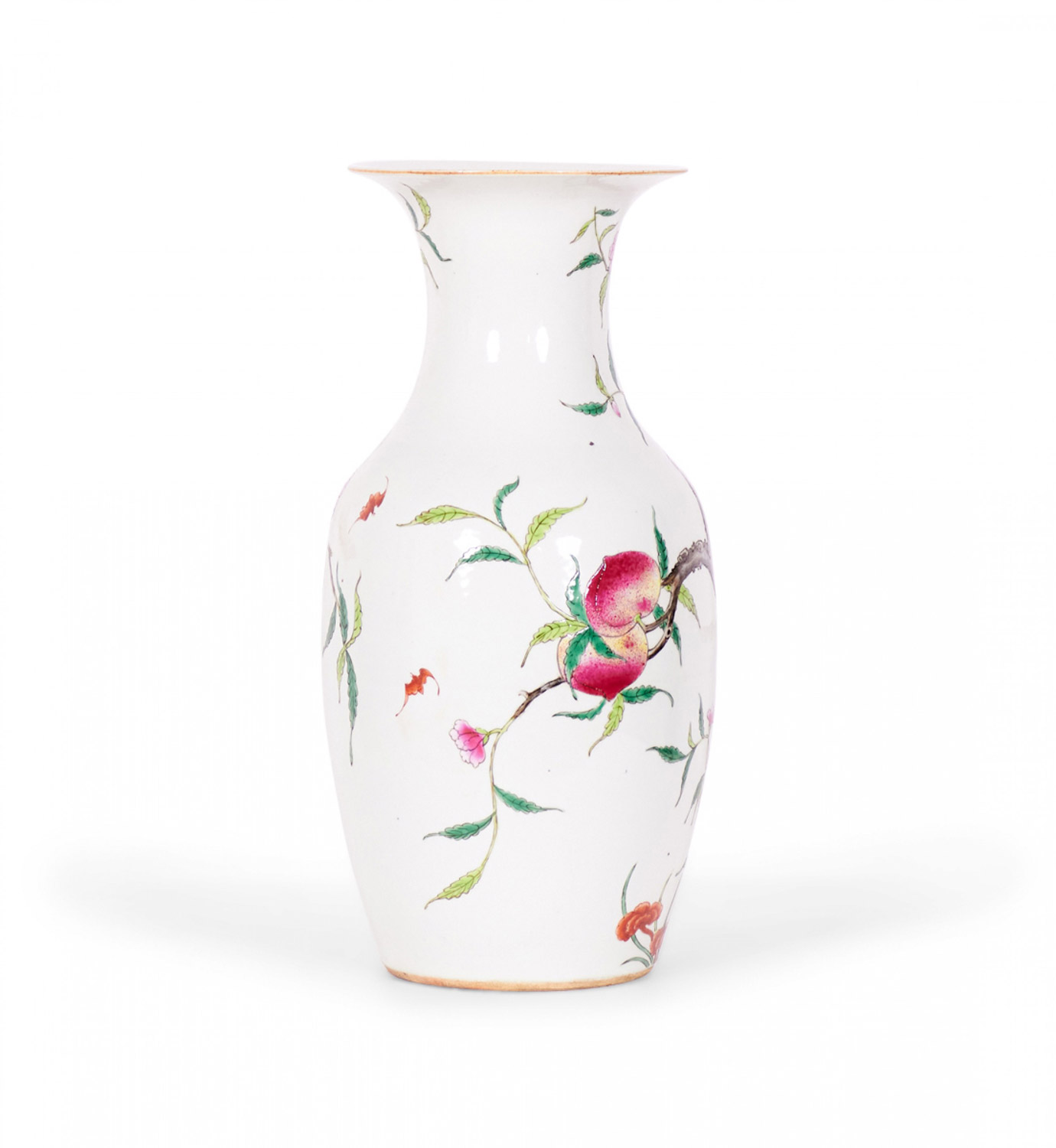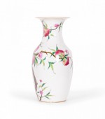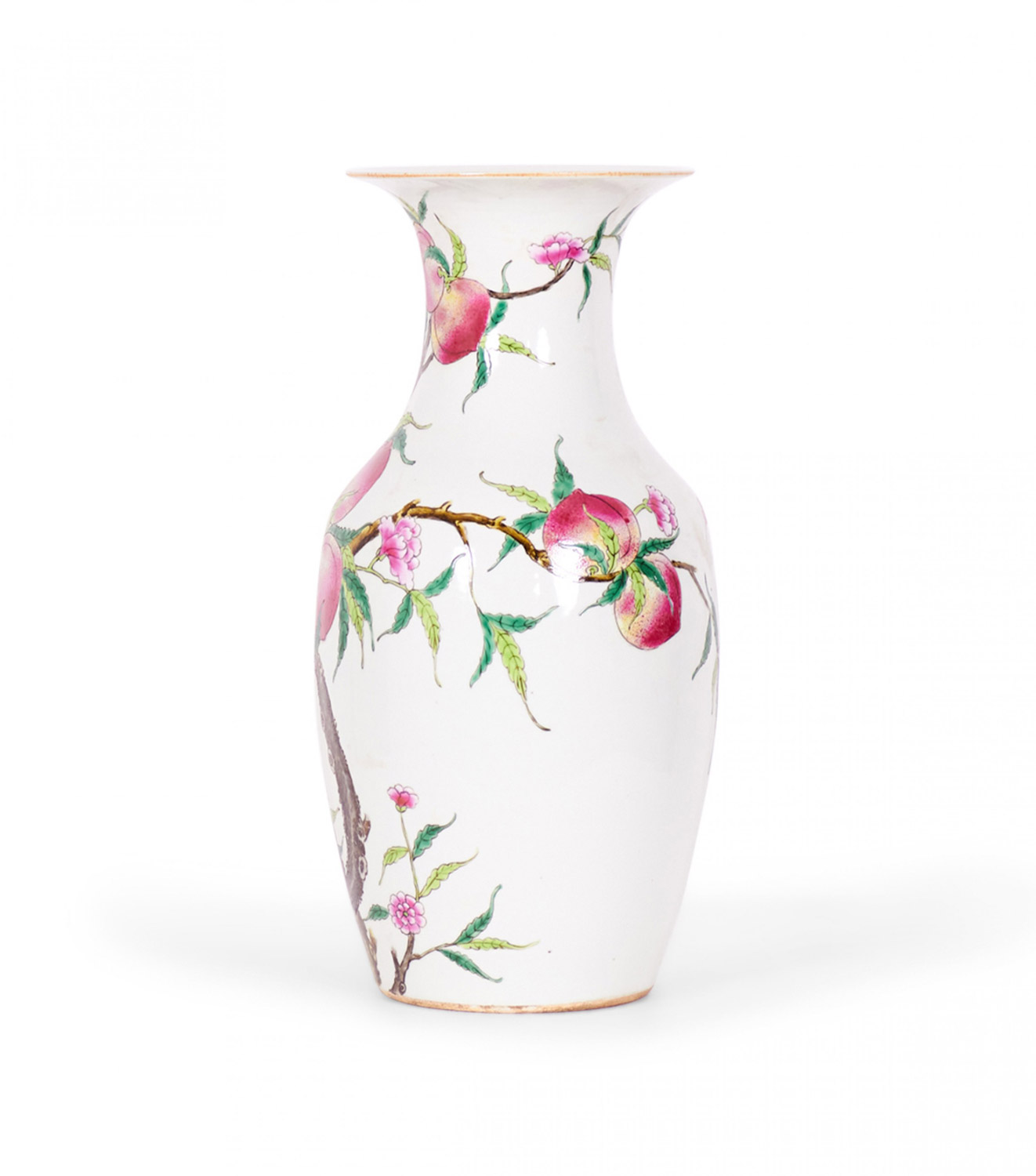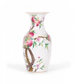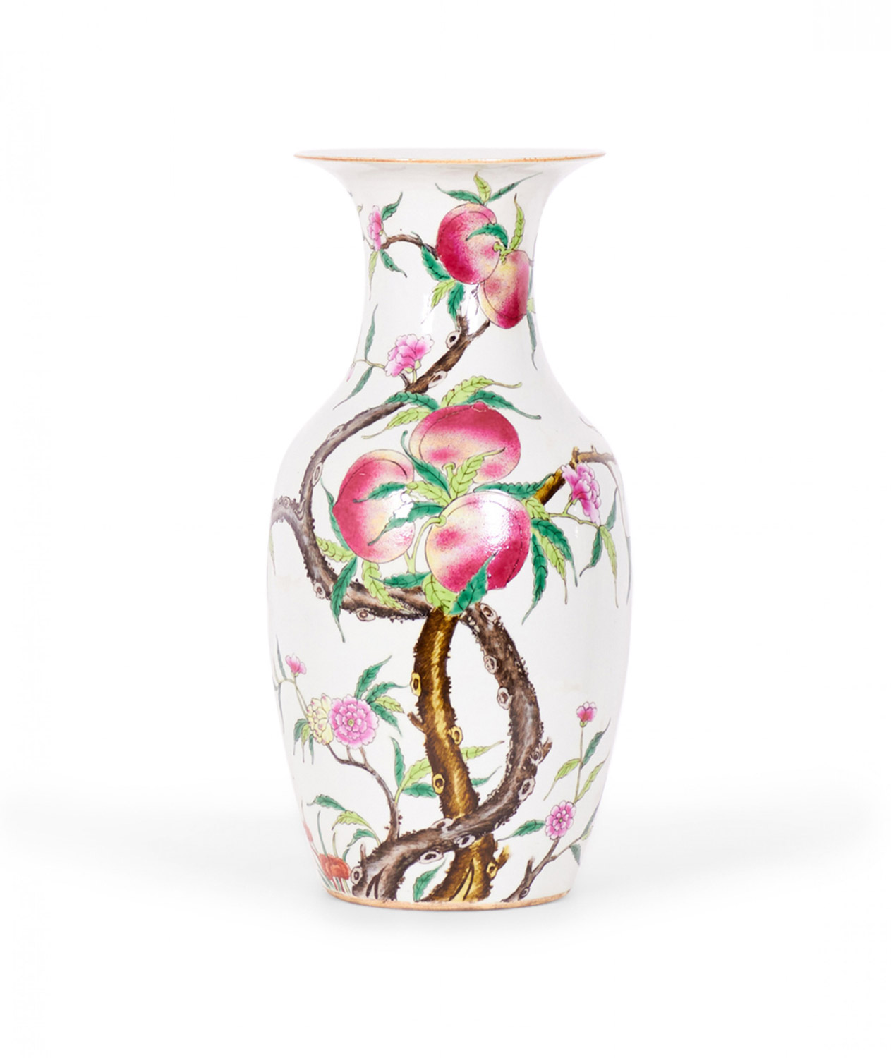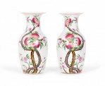 Pair of Antique Chinese Urn Shaped Flowering Fruit Tree Design Porcelain Vases
