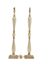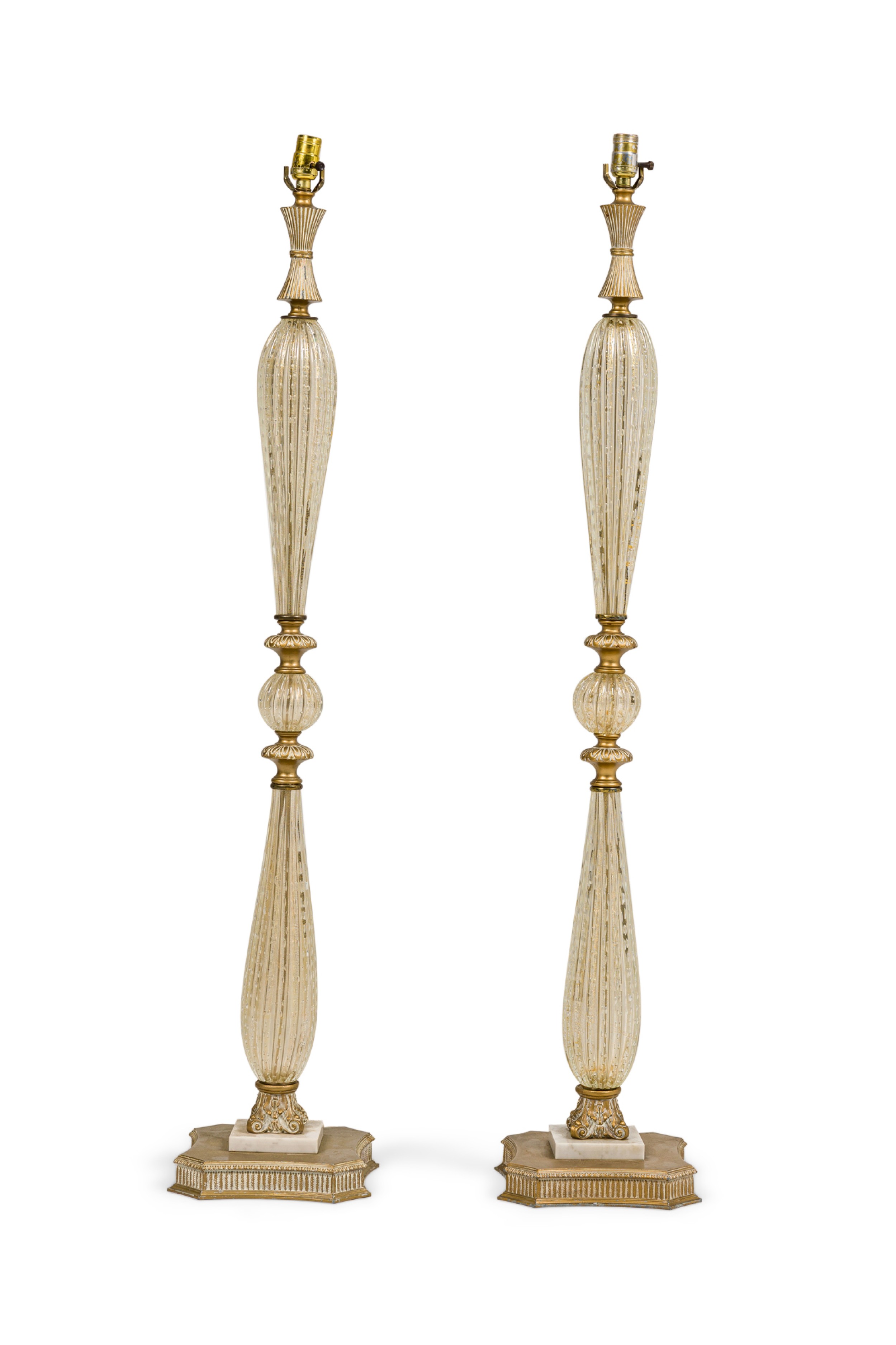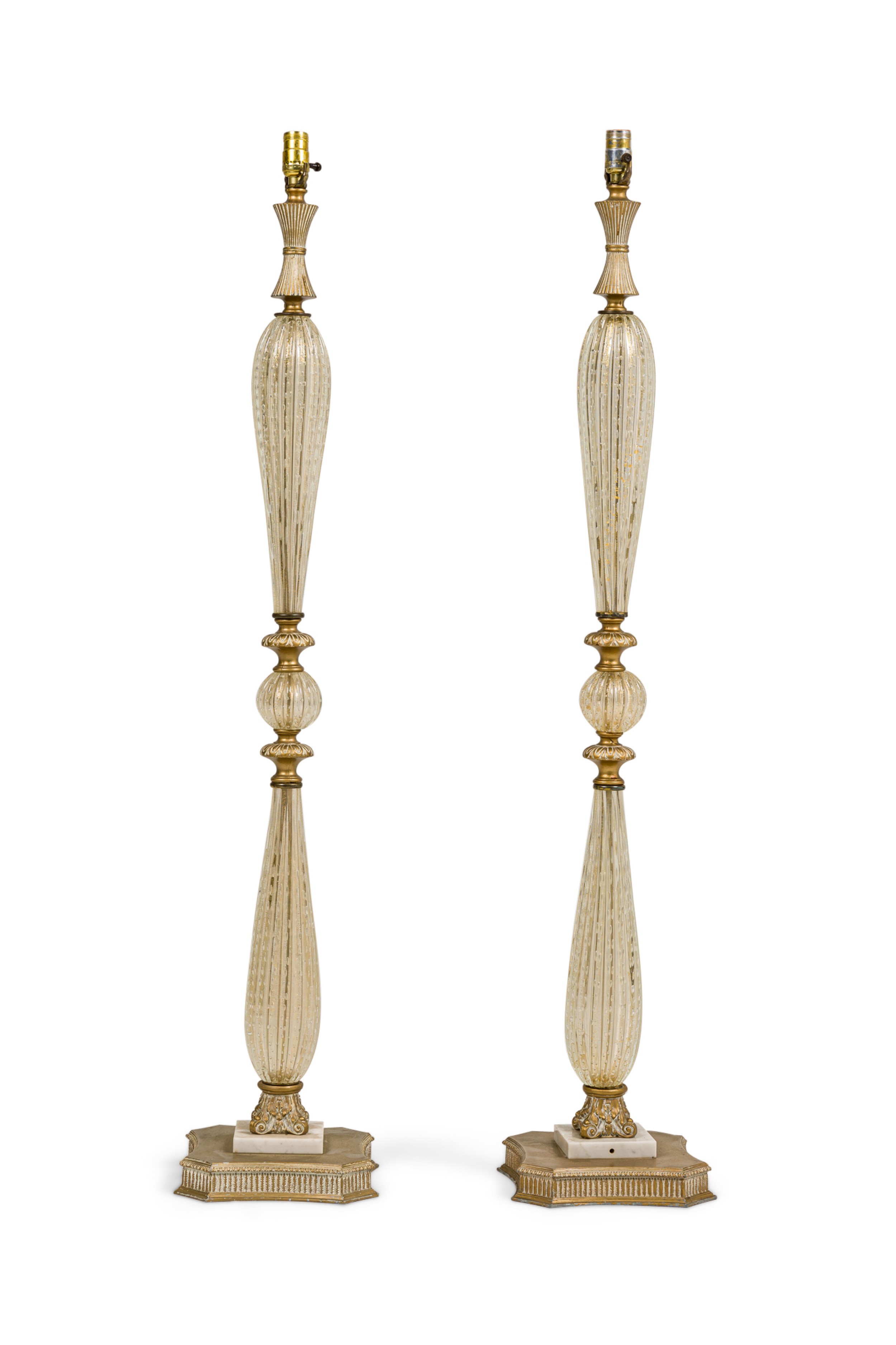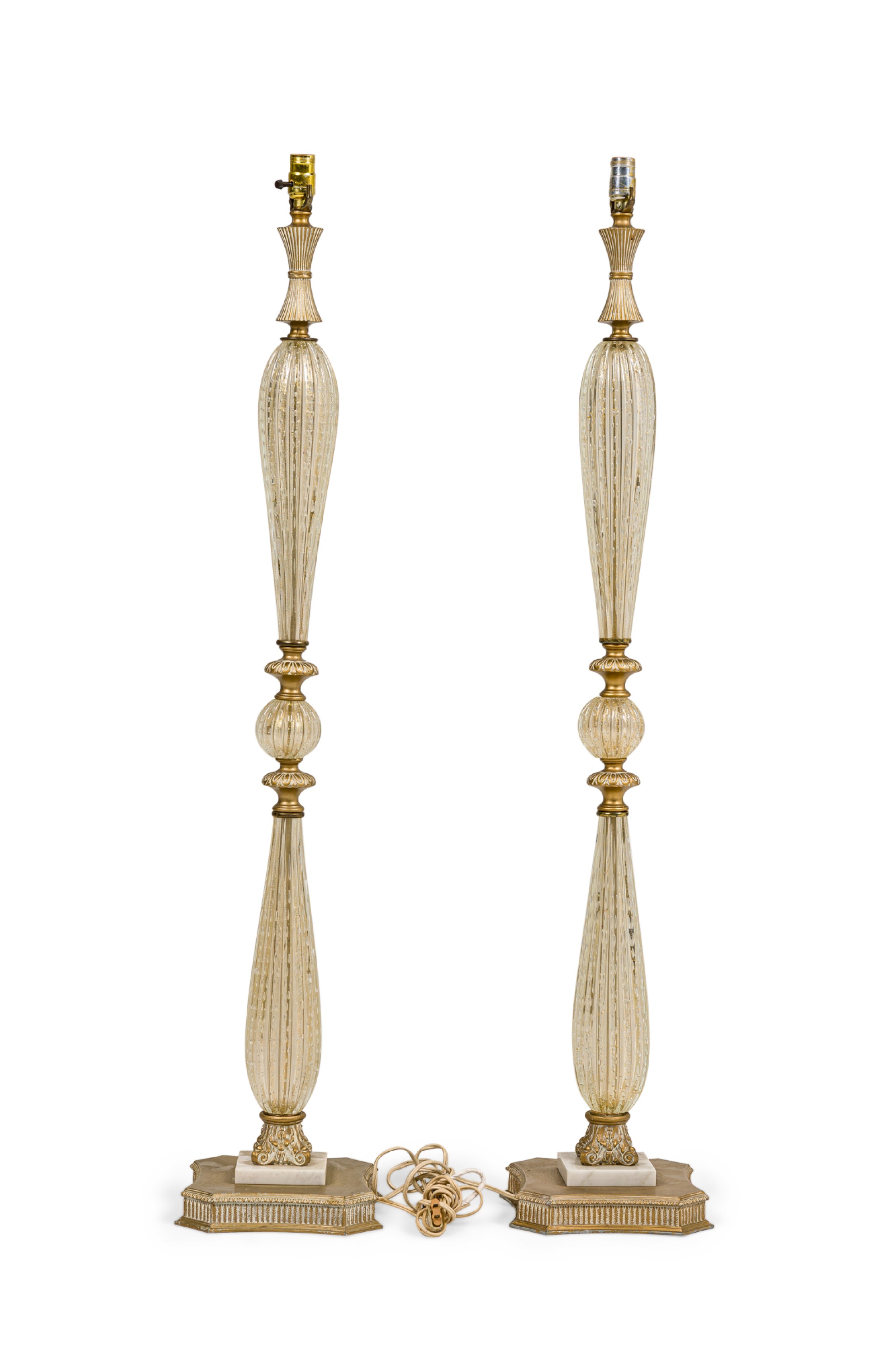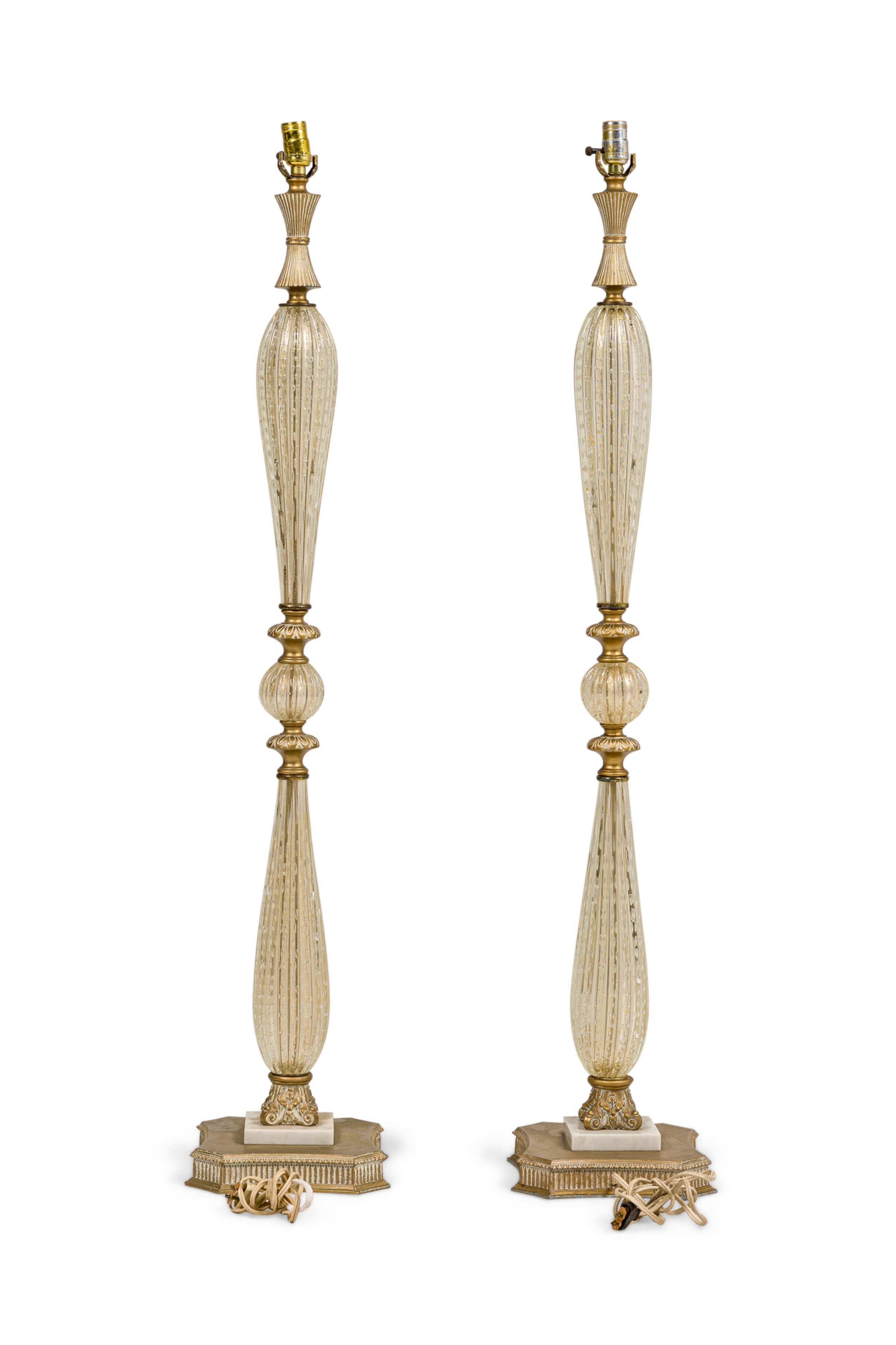 Pair of Barovier & Toso Italian Mid-Century Bubble and Gold Fleck Murano Glass Floor Lamps