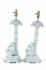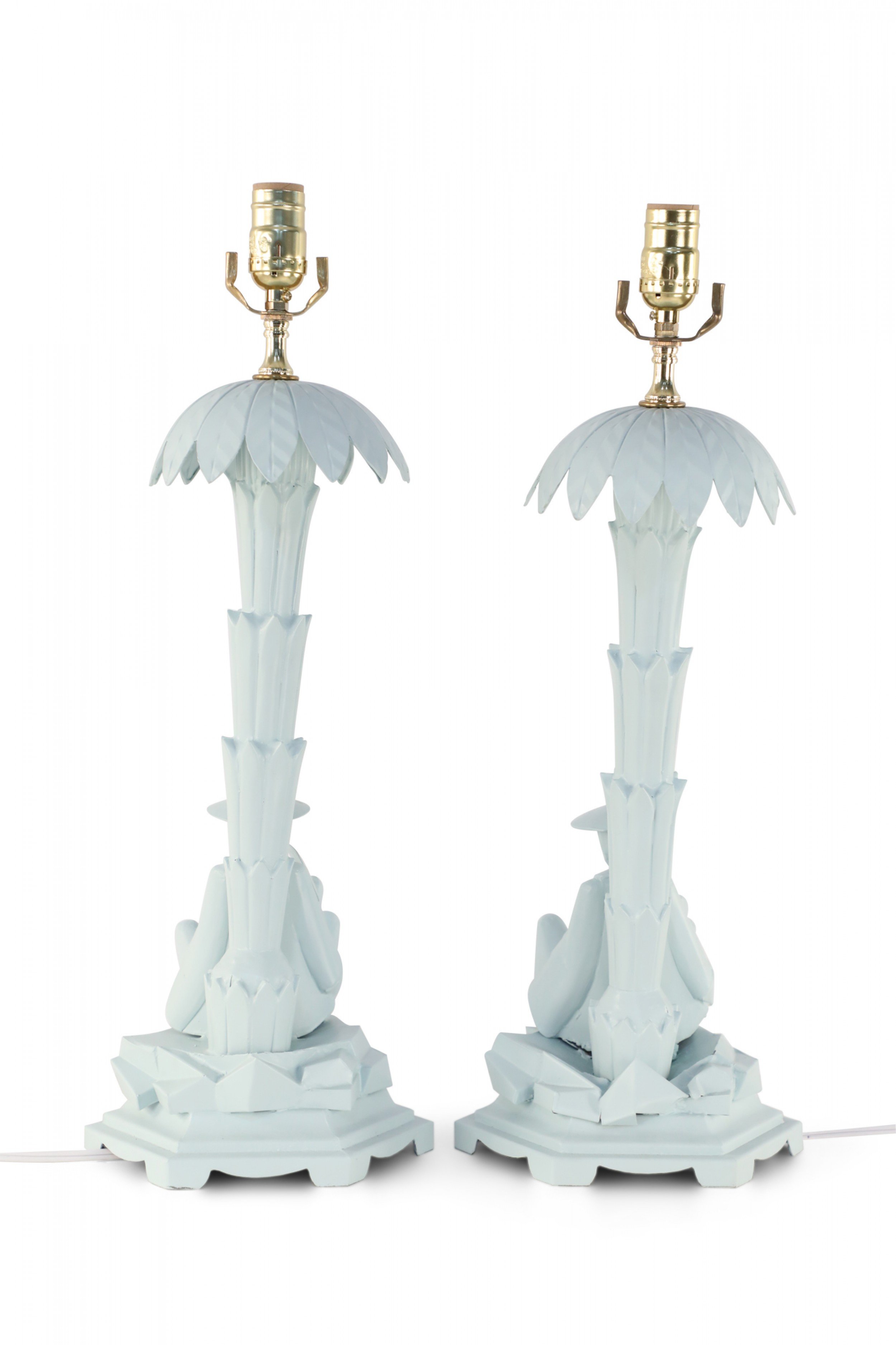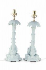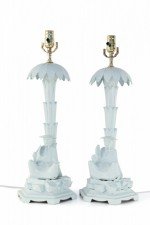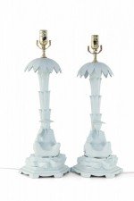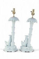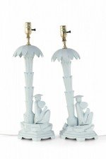 Pair of Chinese Blue Tole Palm Tree and Man Table Lamps
