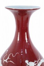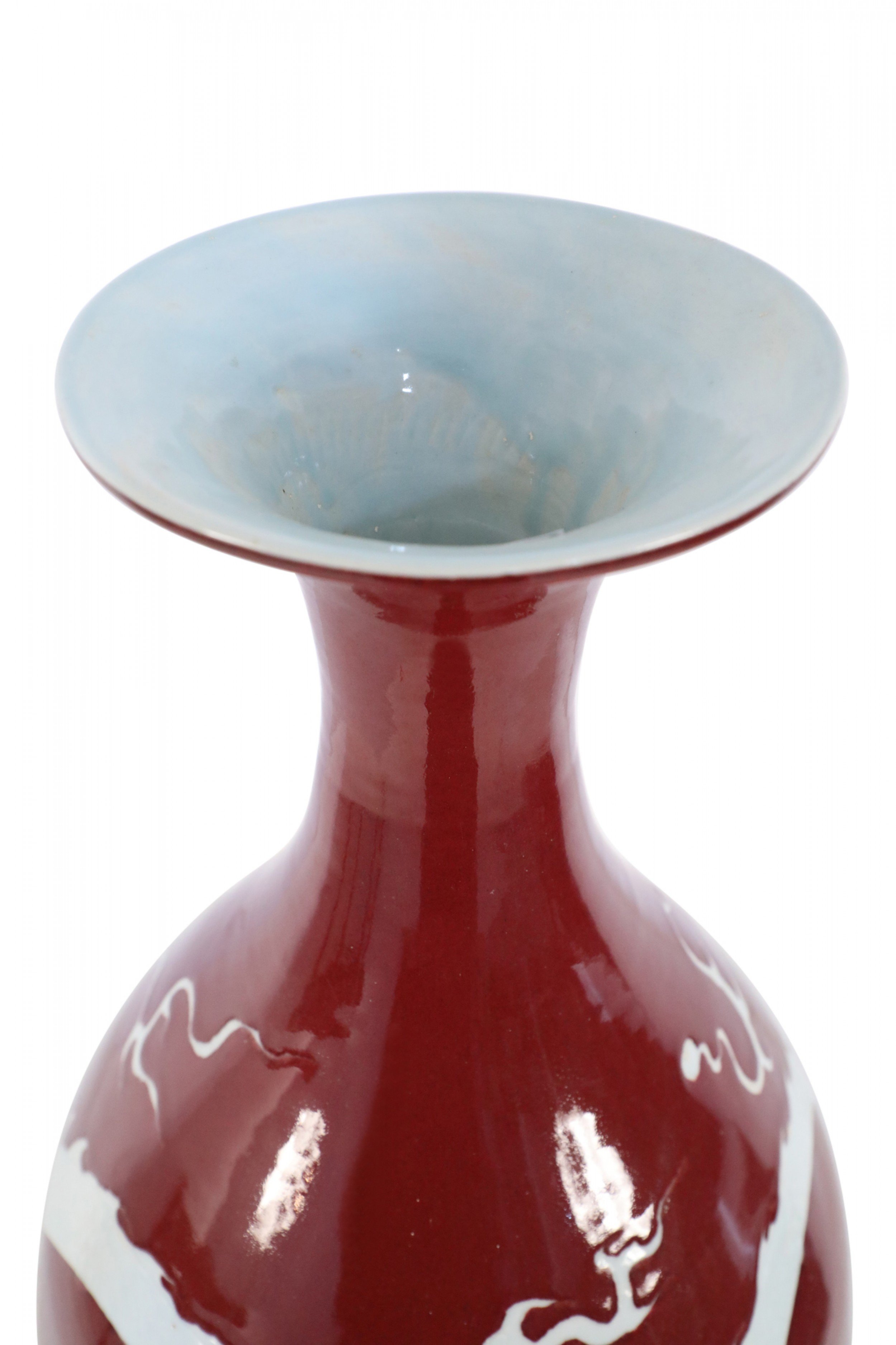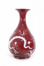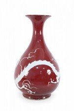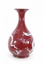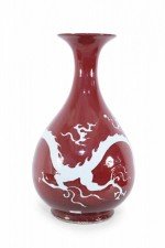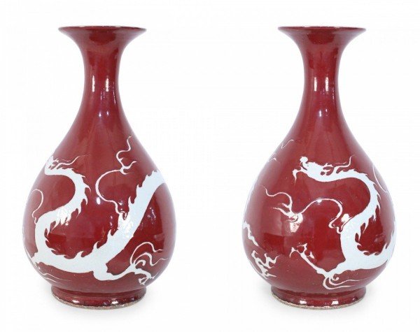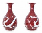 Pair of Chinese Burgundy and White Dragon Motif Vases