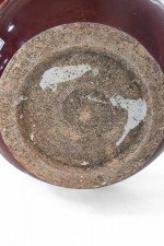 PAIR of Chinese ceramic burgundy vases decorated with the white silhouettes of dragons wrapping around their pear-shaped forms (PRICED AS PAIR)..