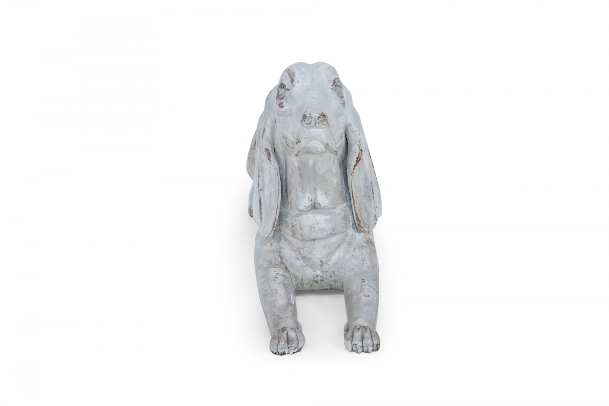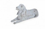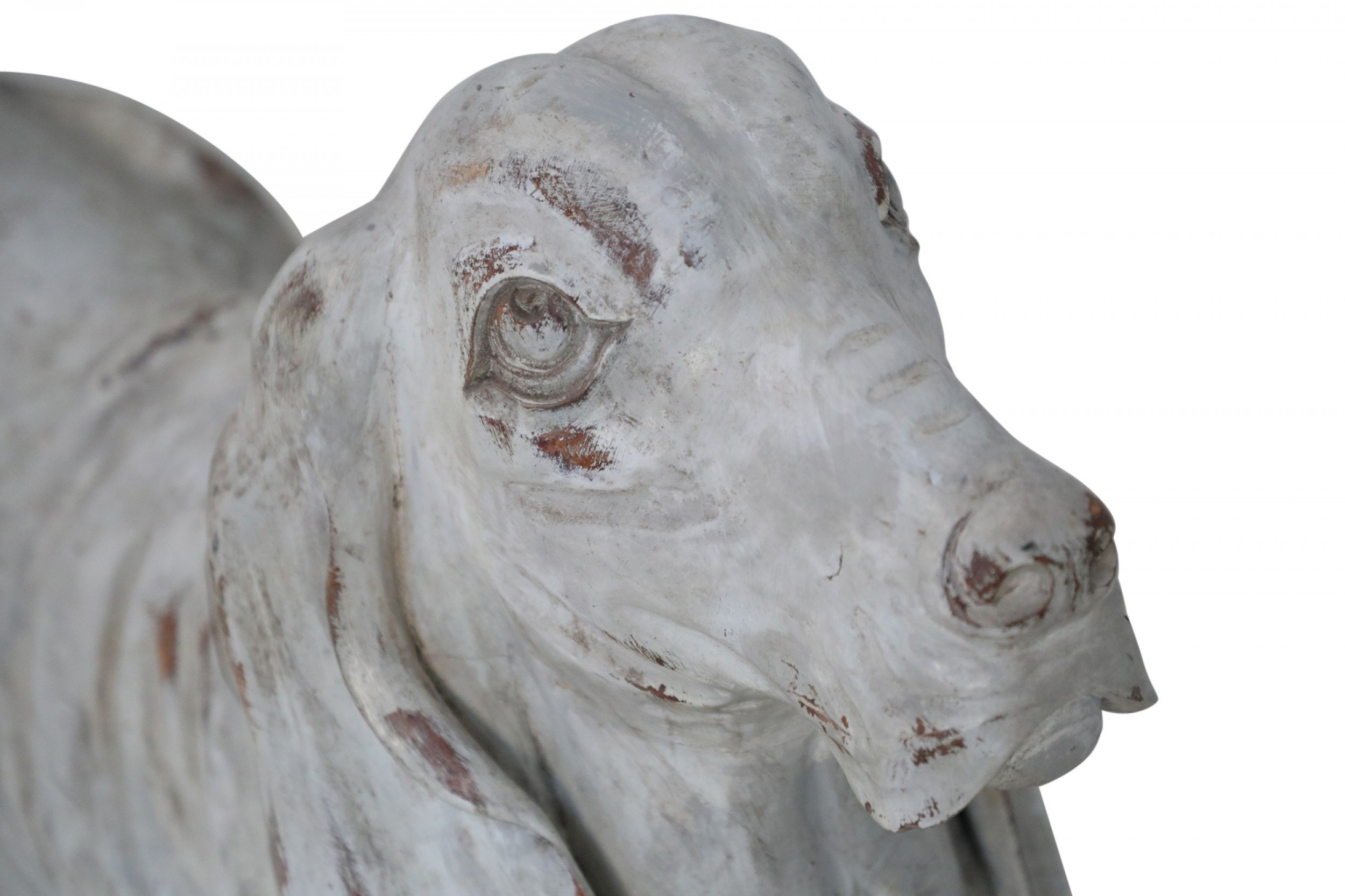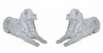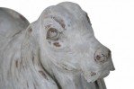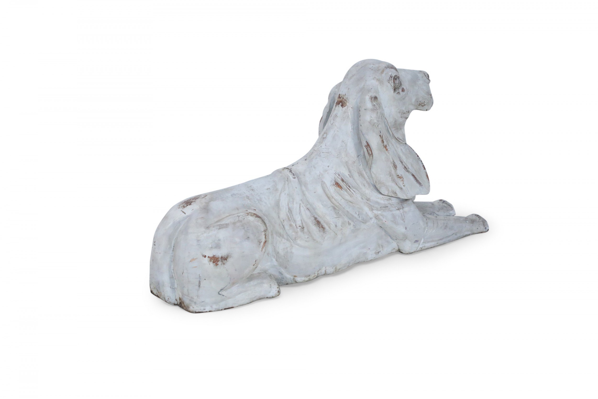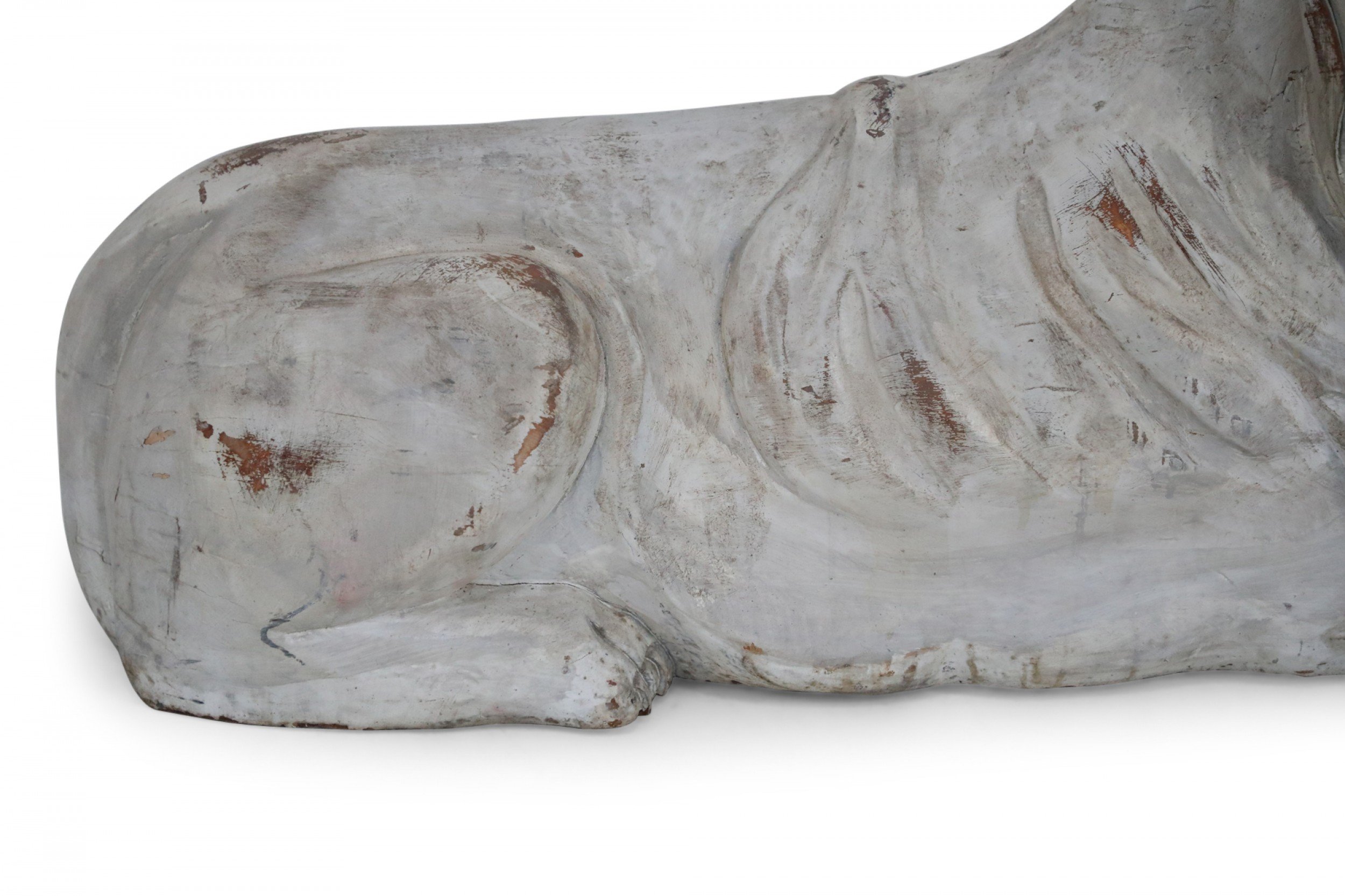 PAIR of Chinese carved wooden reclining dogs painted with whitewash finishes (PRICED AS PAIR)(Similar statues: NWL2458, NWL2459)