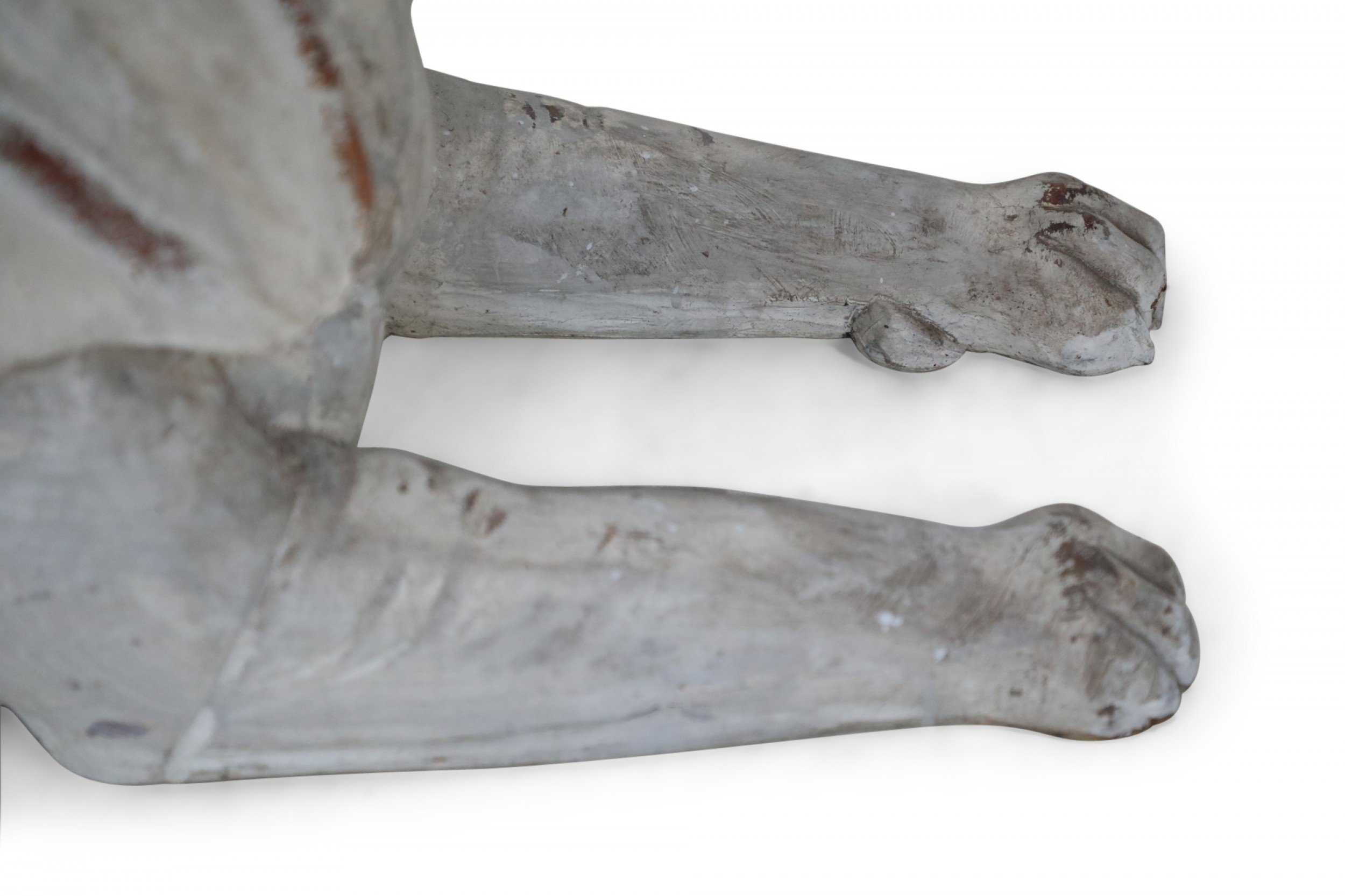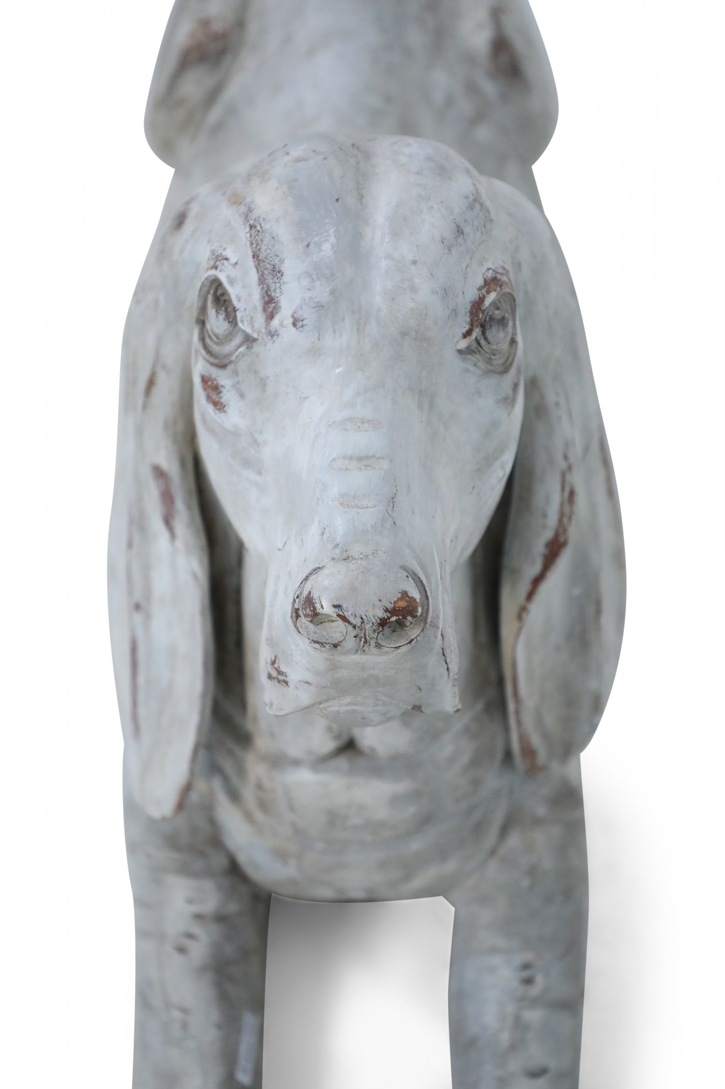 Pair of Chinese Carved Whitewashed Wooden Dog Statues
