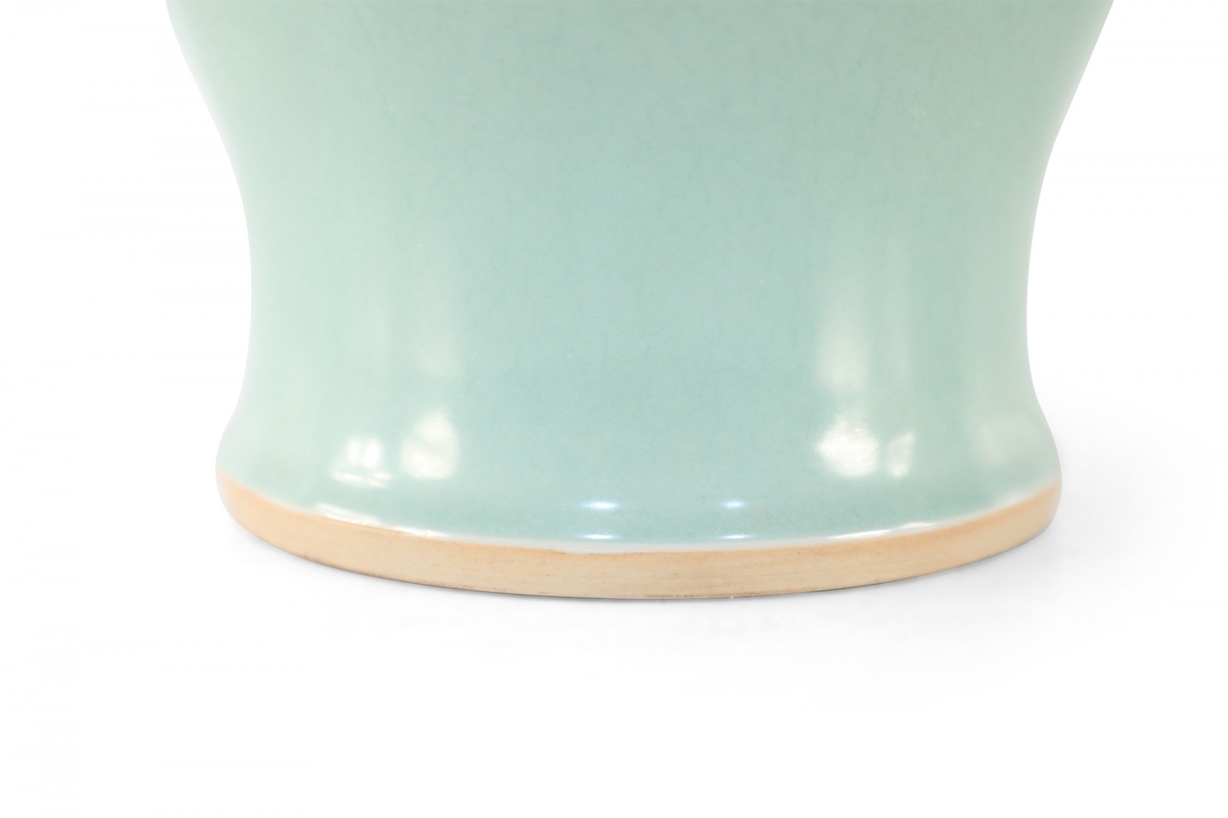 Pair of Chinese Celadon Revolving Pattern Porcelain Urns