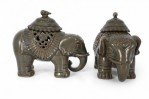 Pair of Chinese Lidded Porcelain Elephant Figurines