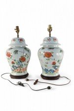 Style: Asian Materials & Techniques: Brass, metal, porcelain, wood Category: Lighting Condition: Ships without shades.