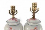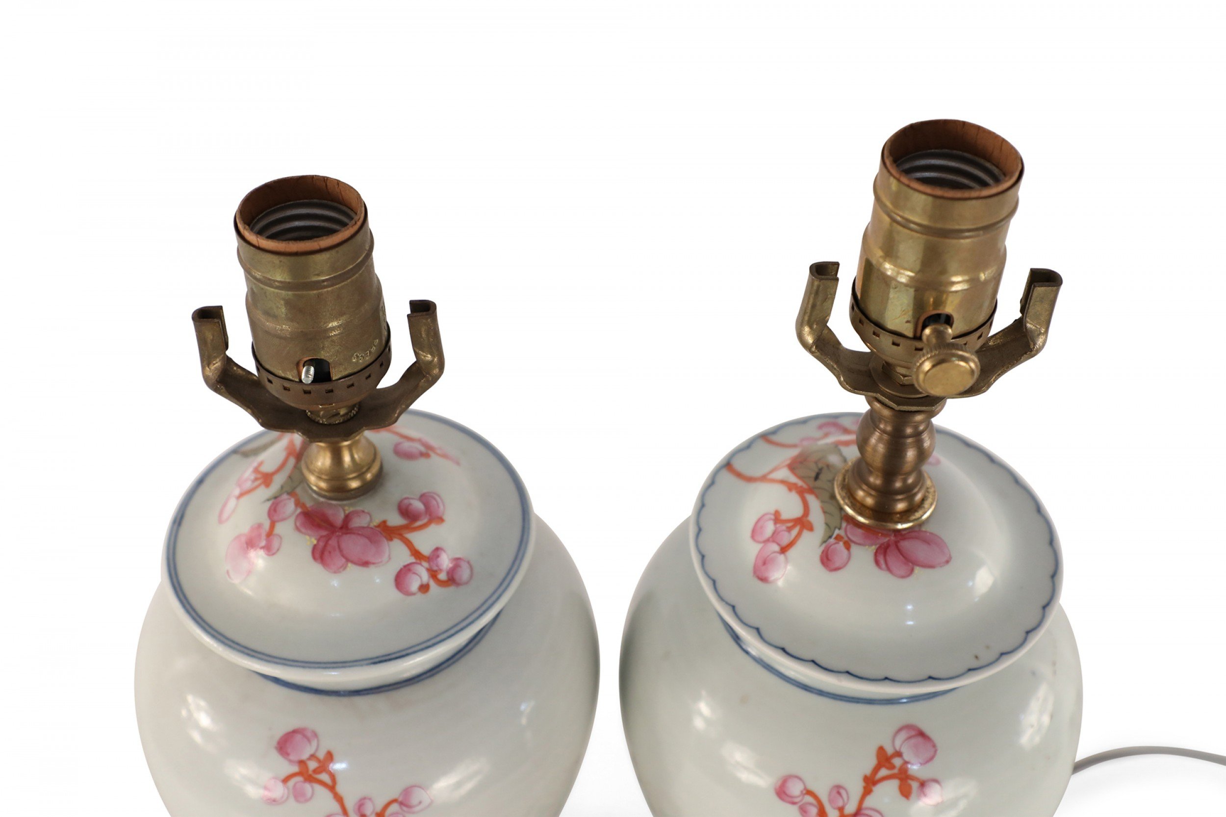 Style: Asian Materials & Techniques: Brass, metal, porcelain, wood Category: Lighting Condition: Slight variance in size and hardware between the lamps. Ships without shades.