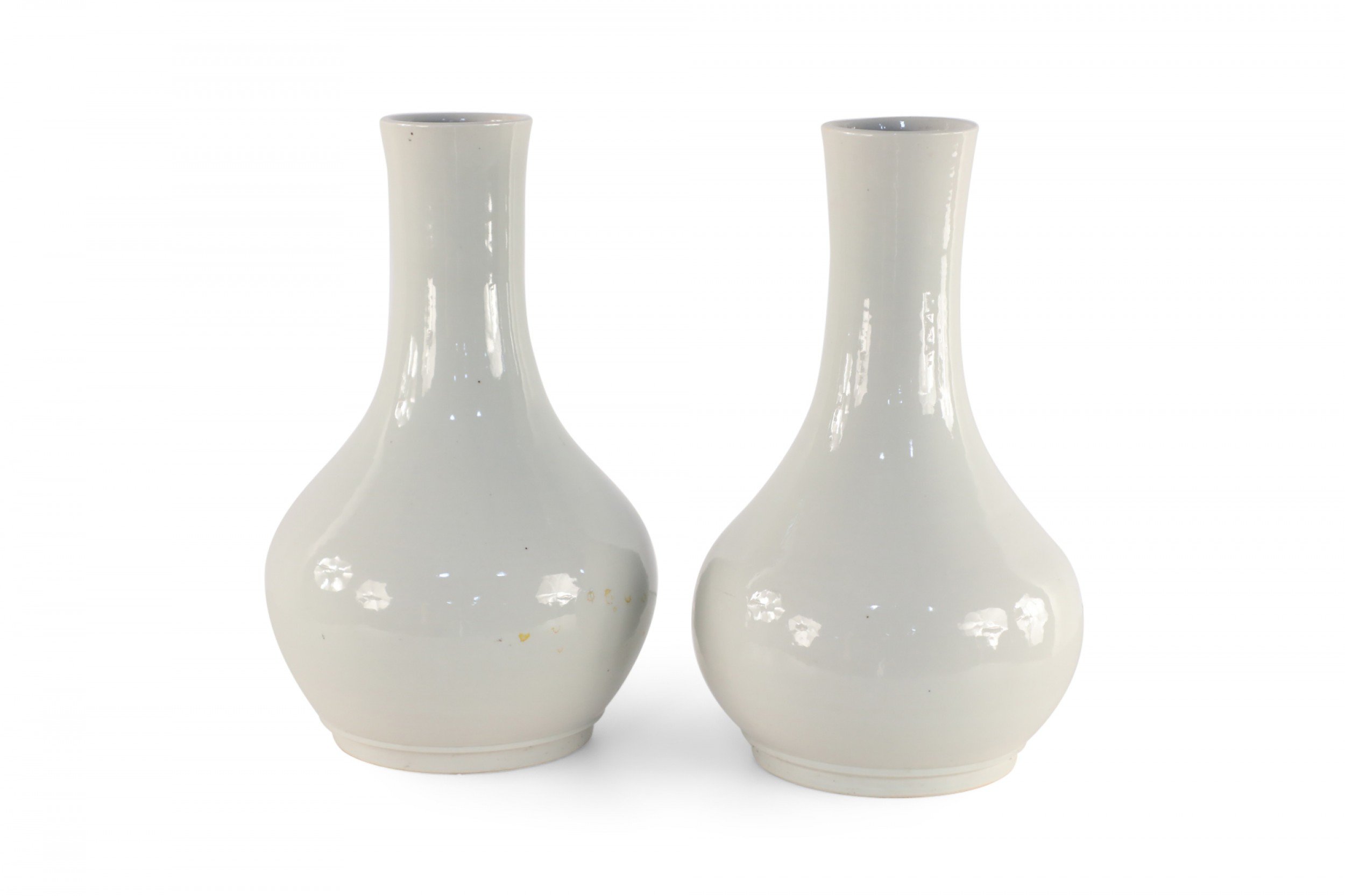 PAIR of similar Chinese porcelain vases with globular forms in pale gray hues with glazed finishes (vases vary slightly in shape) (PRICED AS PAIR)..