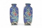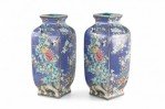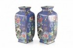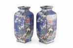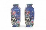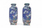 Pair of Chinese Qing Dynasty Style Blue and Floral Porcelain Sleeve Vases