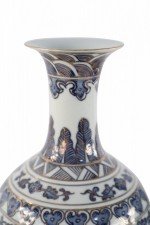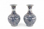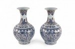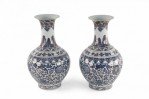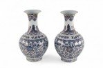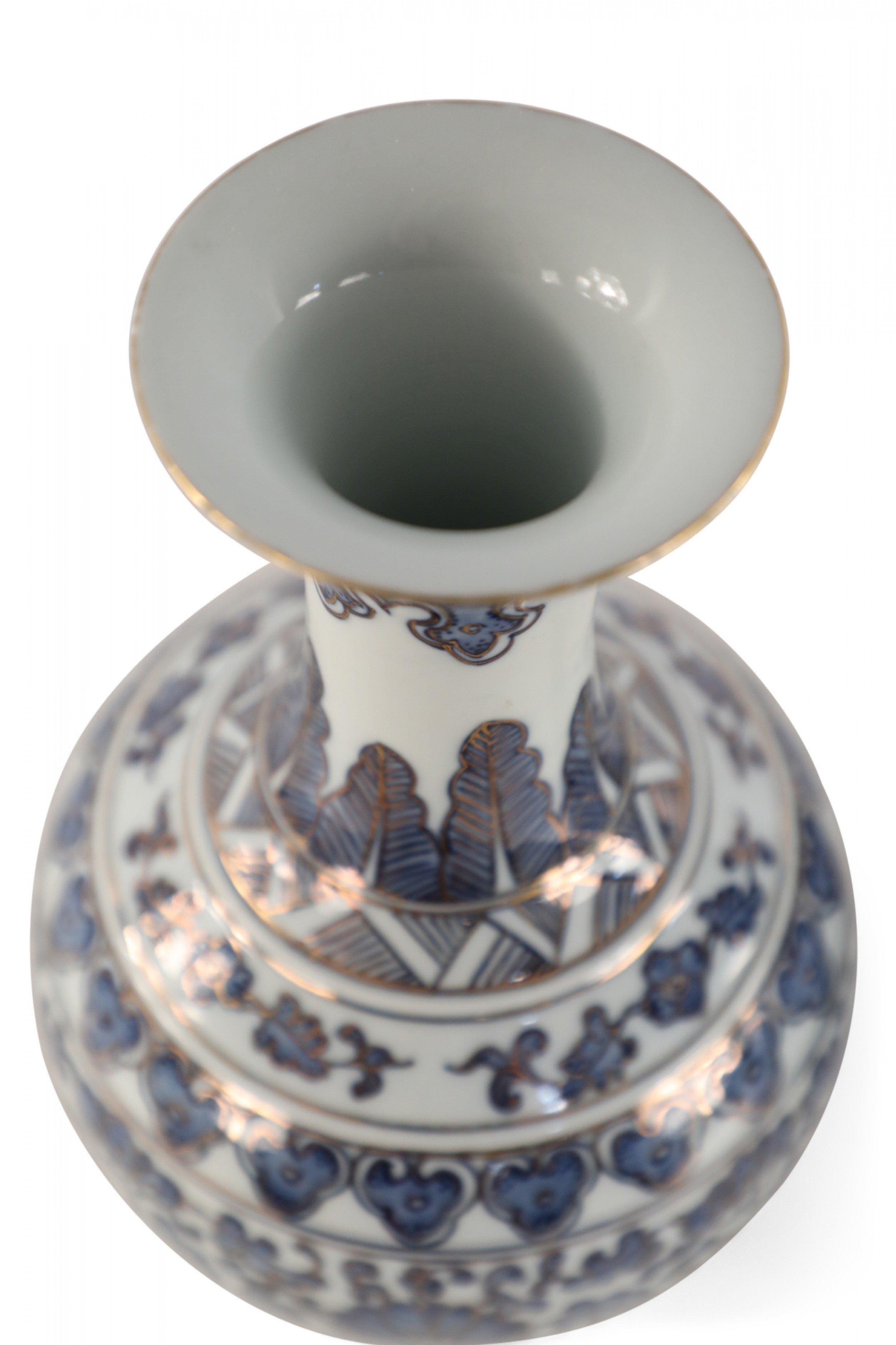 Pair of Chinese Qing Dynasty Style Blue and White Gold-Lined Porcelain Vases