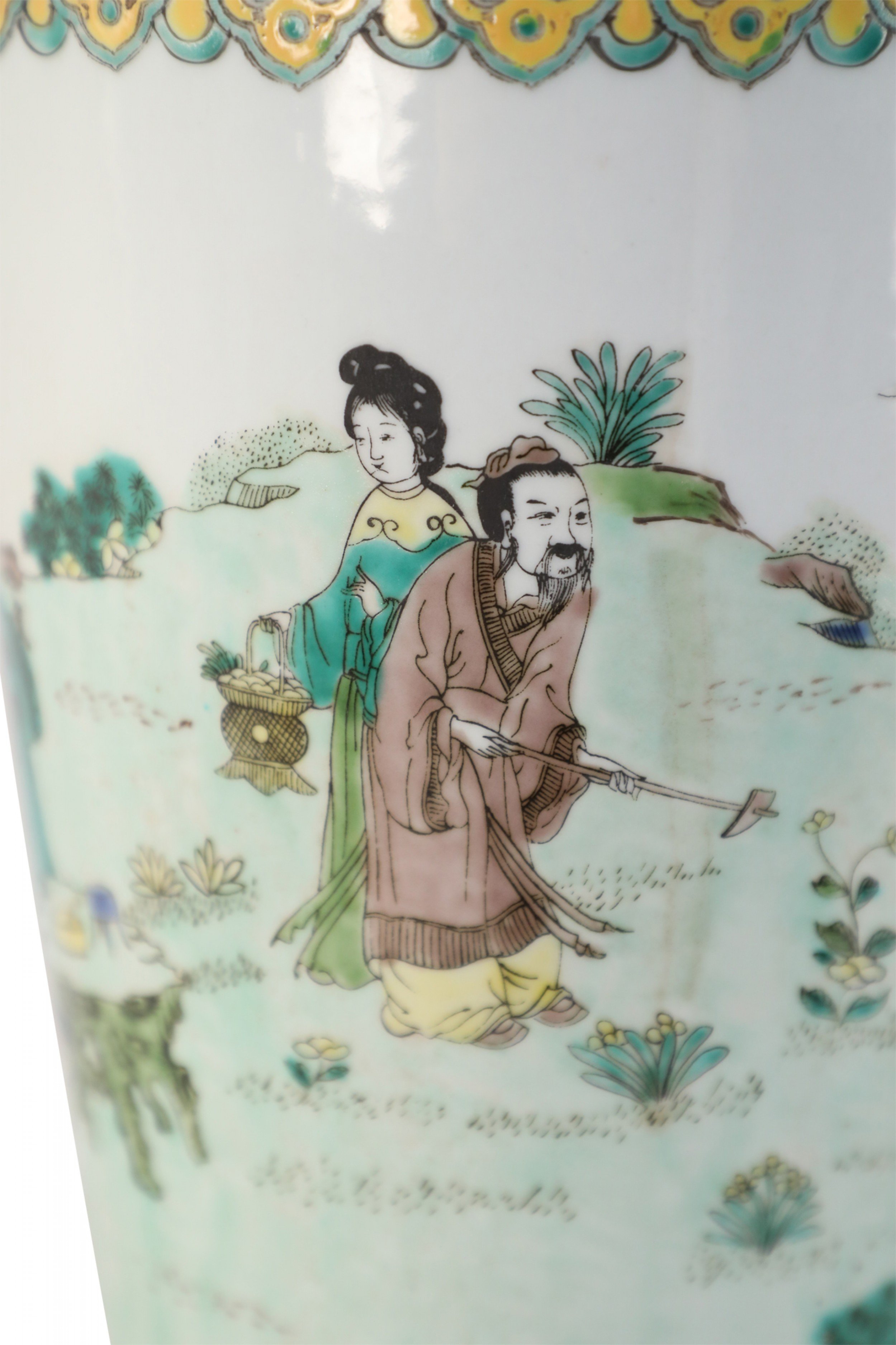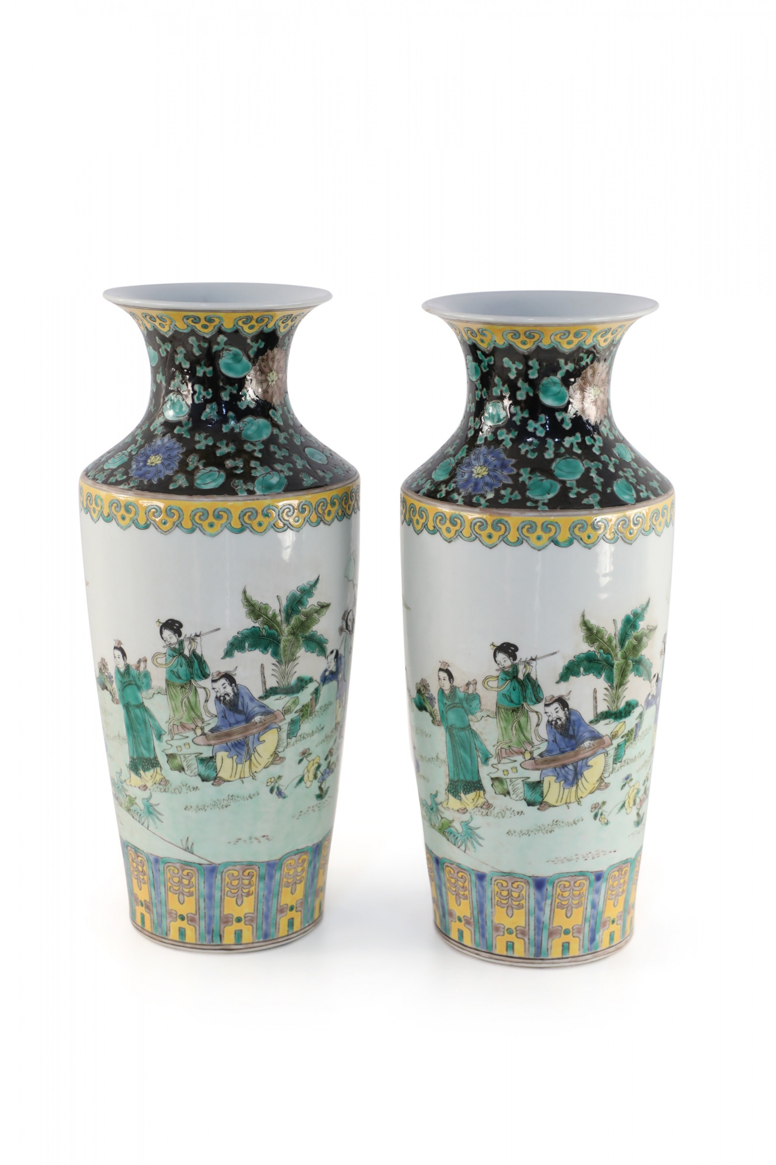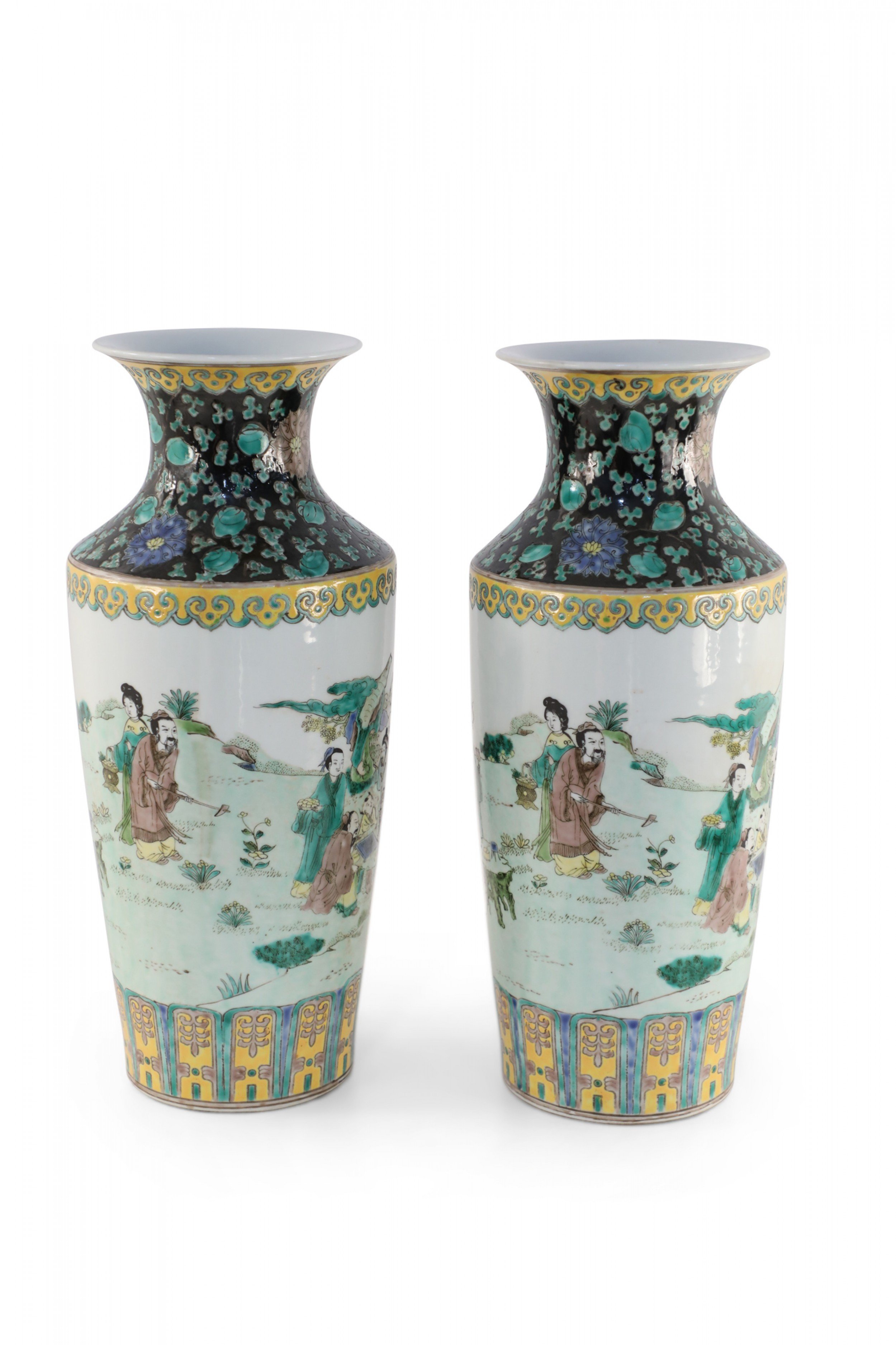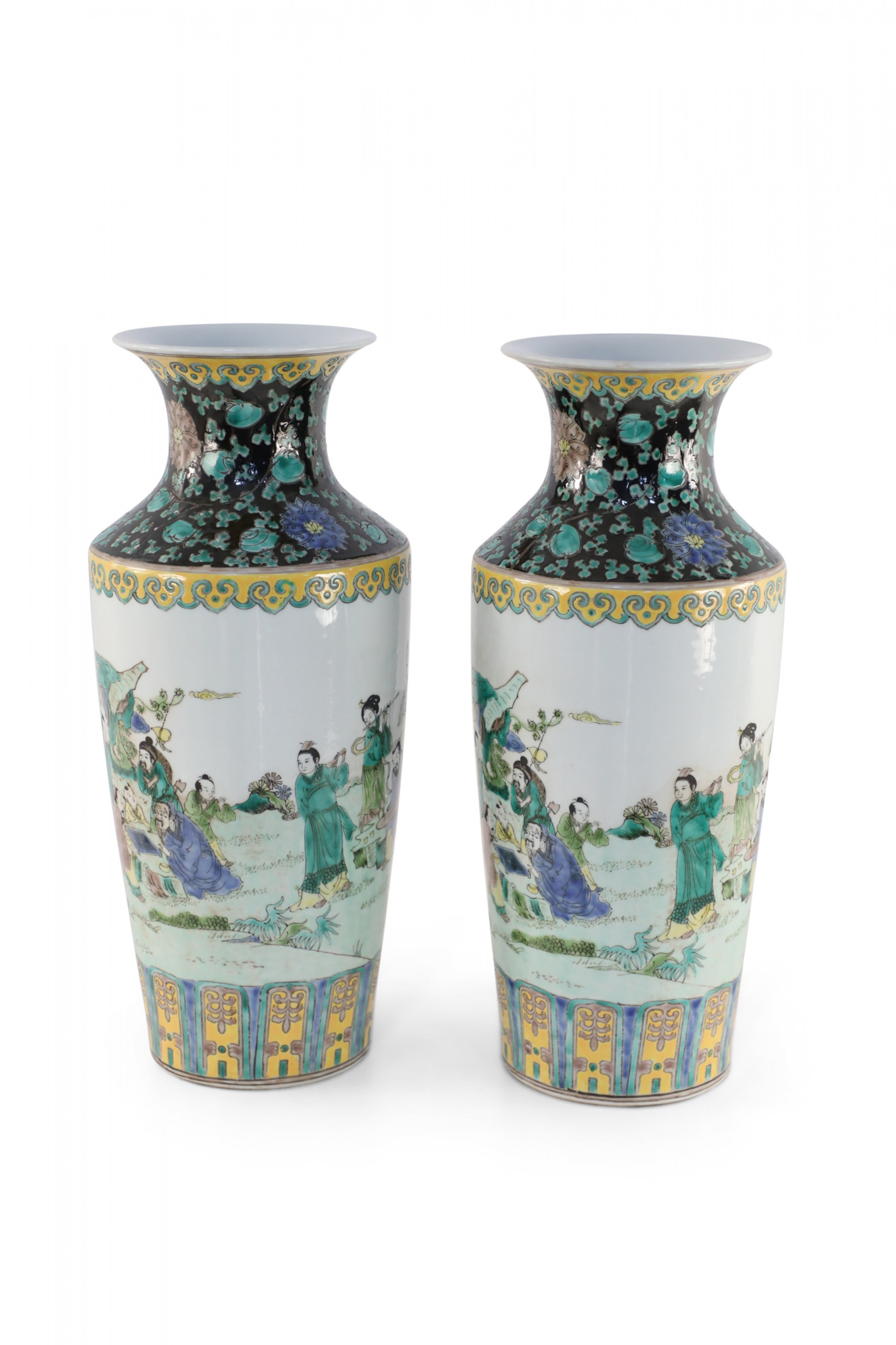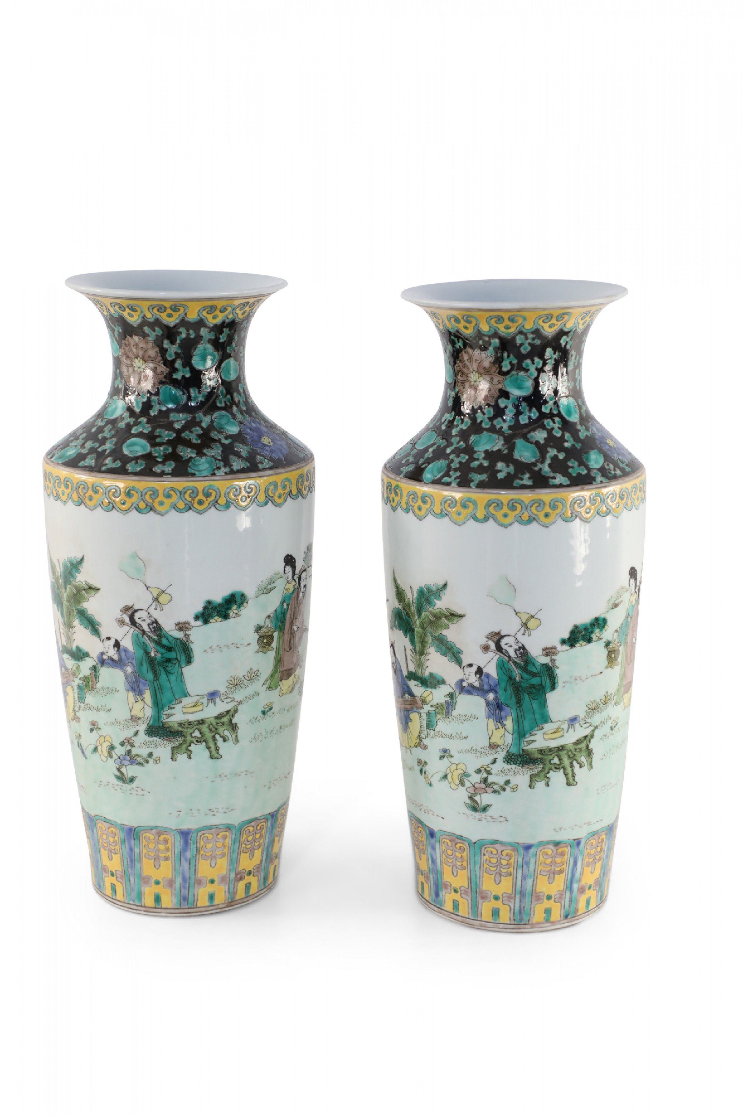 Pair of Chinese Qing Dynasty Style Garden Scene Porcelain Sleeve Vases