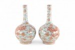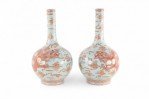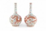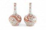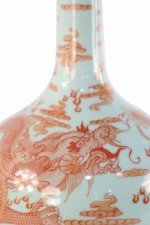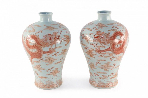 Pair of Chinese Qing Dynasty Style Gray and Alum Red Dragon Motif Porcelain Vases