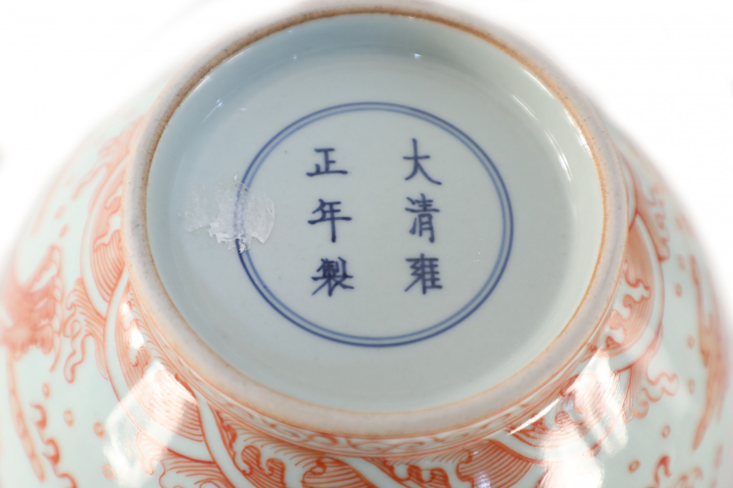 PAIR of Chinese Qing Dynasty Yongzheng Period-style (Mid-20th Century) light gray porcelain vases with globular forms wrapped in alum red glaze dragon motifs (mark on bottoms) (PRICED AS PAIR) (Similar vases: NWL2048)
