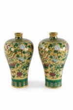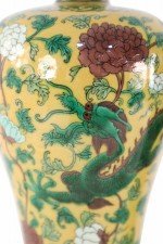 Pair of Chinese Qing Dynasty Style Yellow and Green Dragon Meiping Porcelain Vases