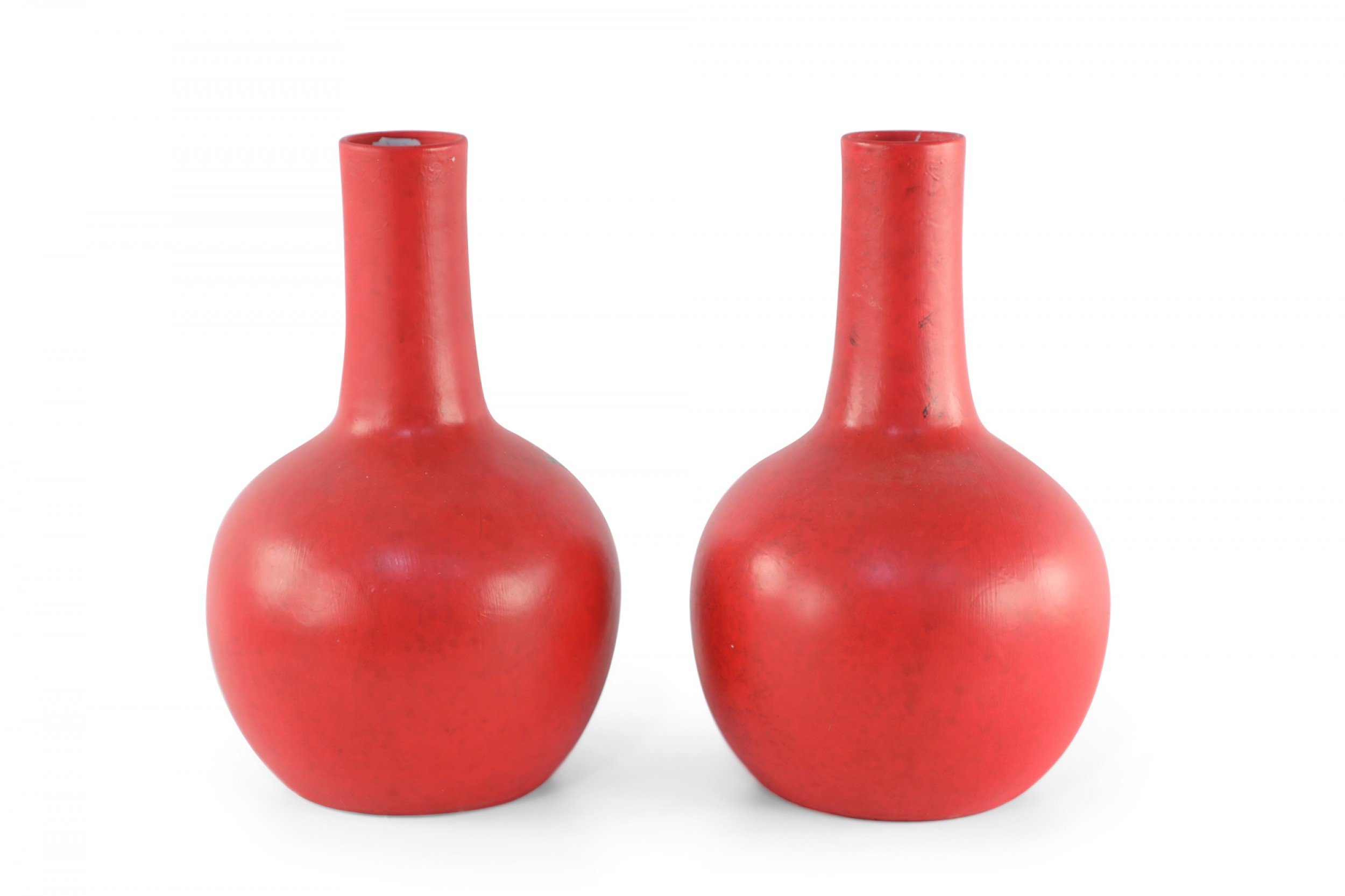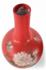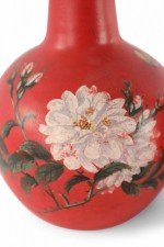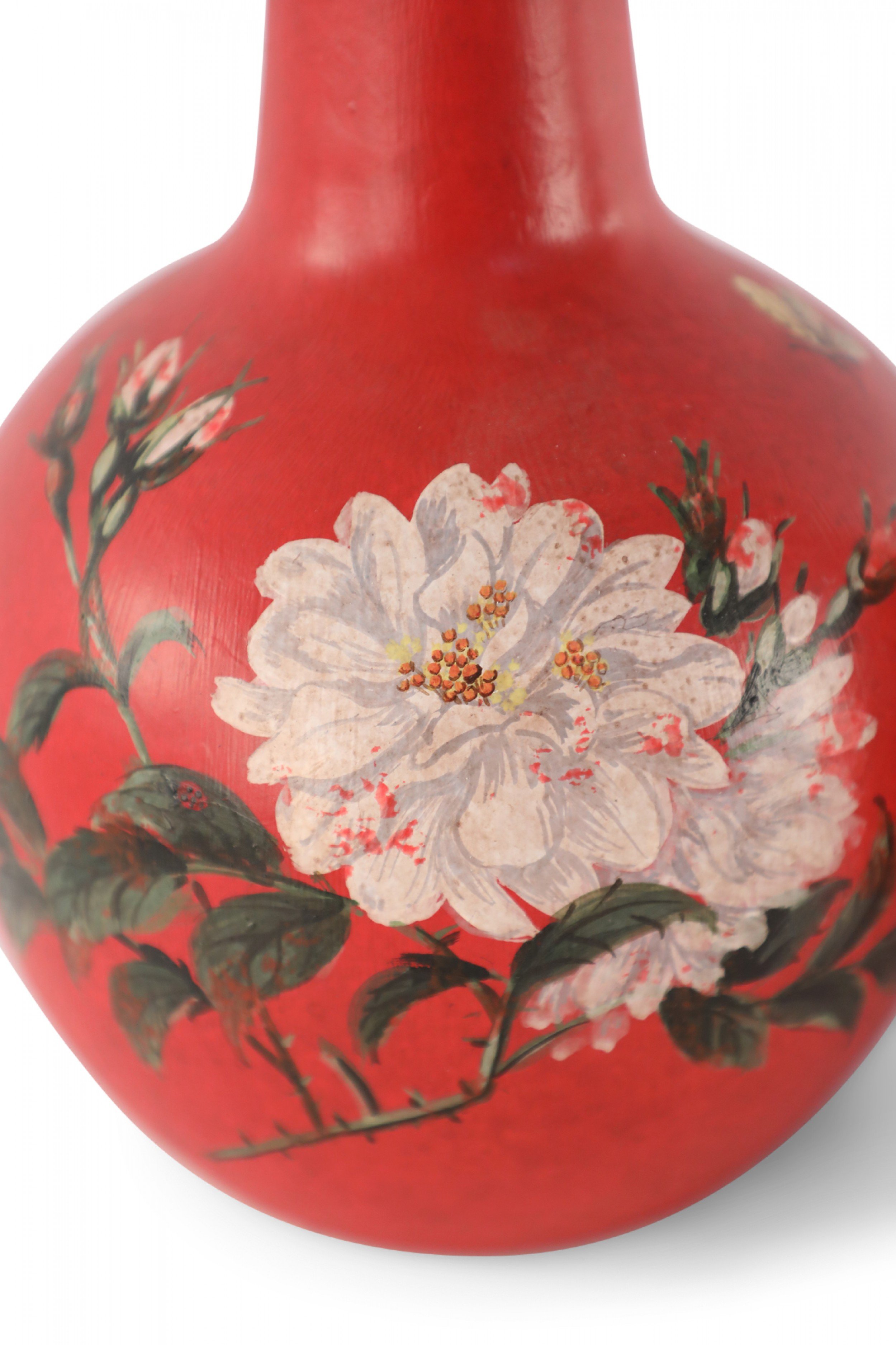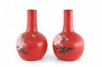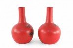 Pair of Chinese Red Flower Design Hand-Painted Porcelain Vases