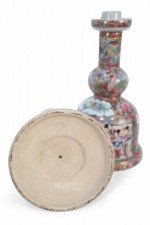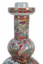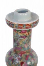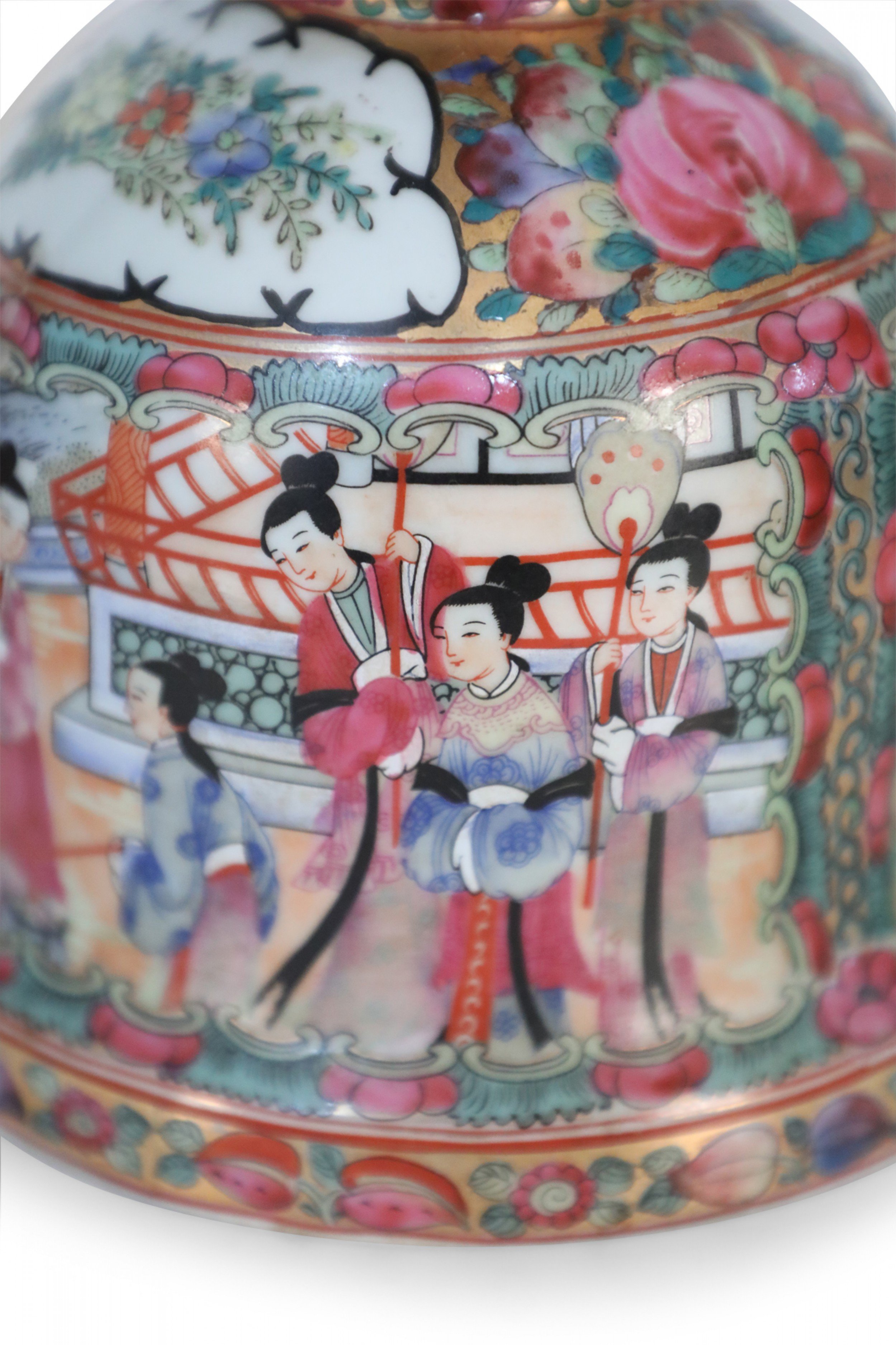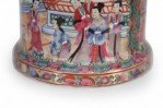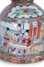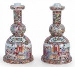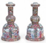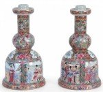 Pair of Chinese Rose Medallion and Genre Scene Candle Holders