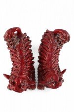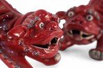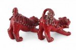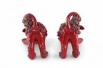 Pair of Chinese Shiwan Guangdong Red Porcelain Foo Dogs