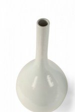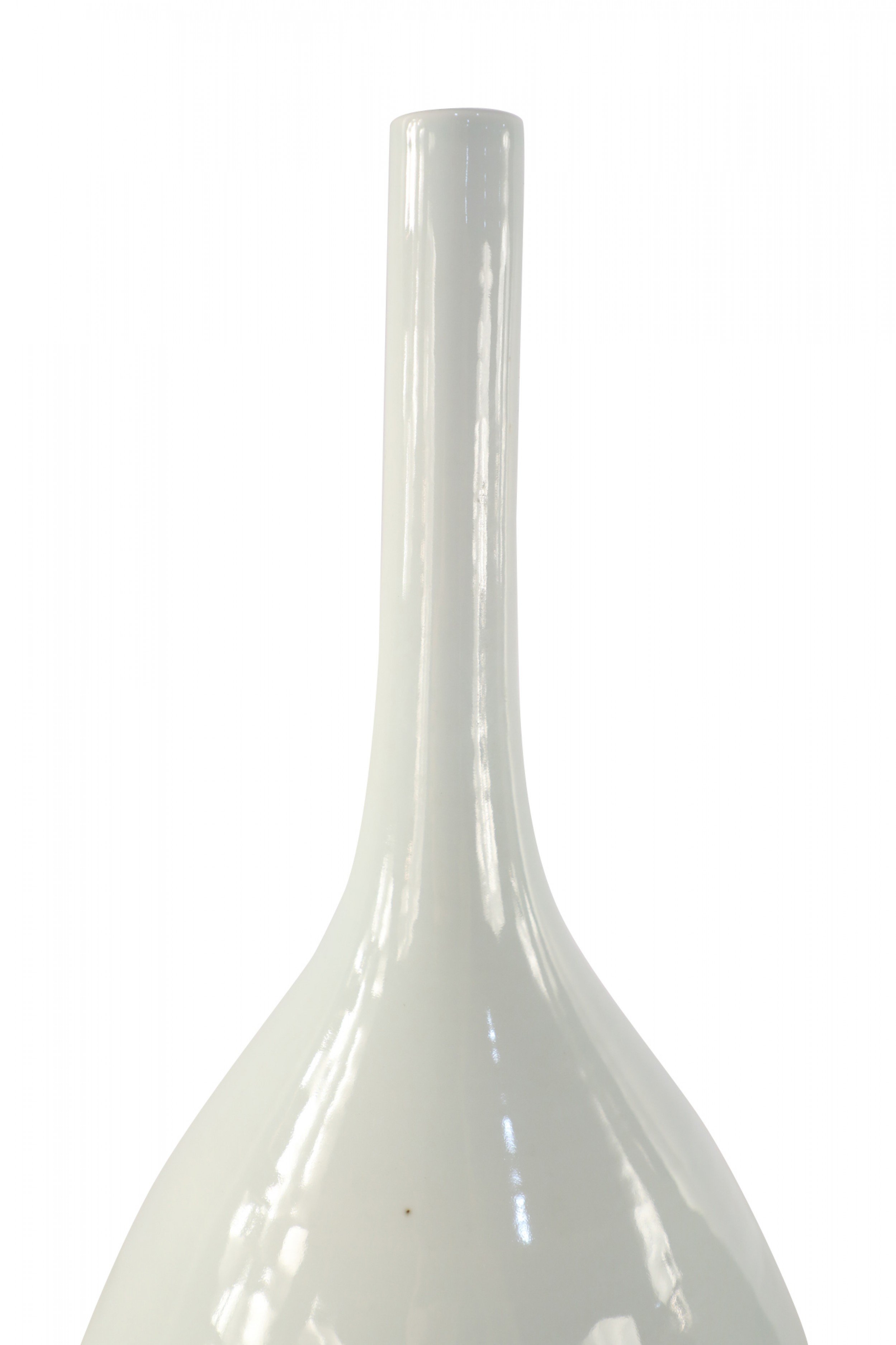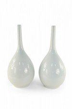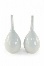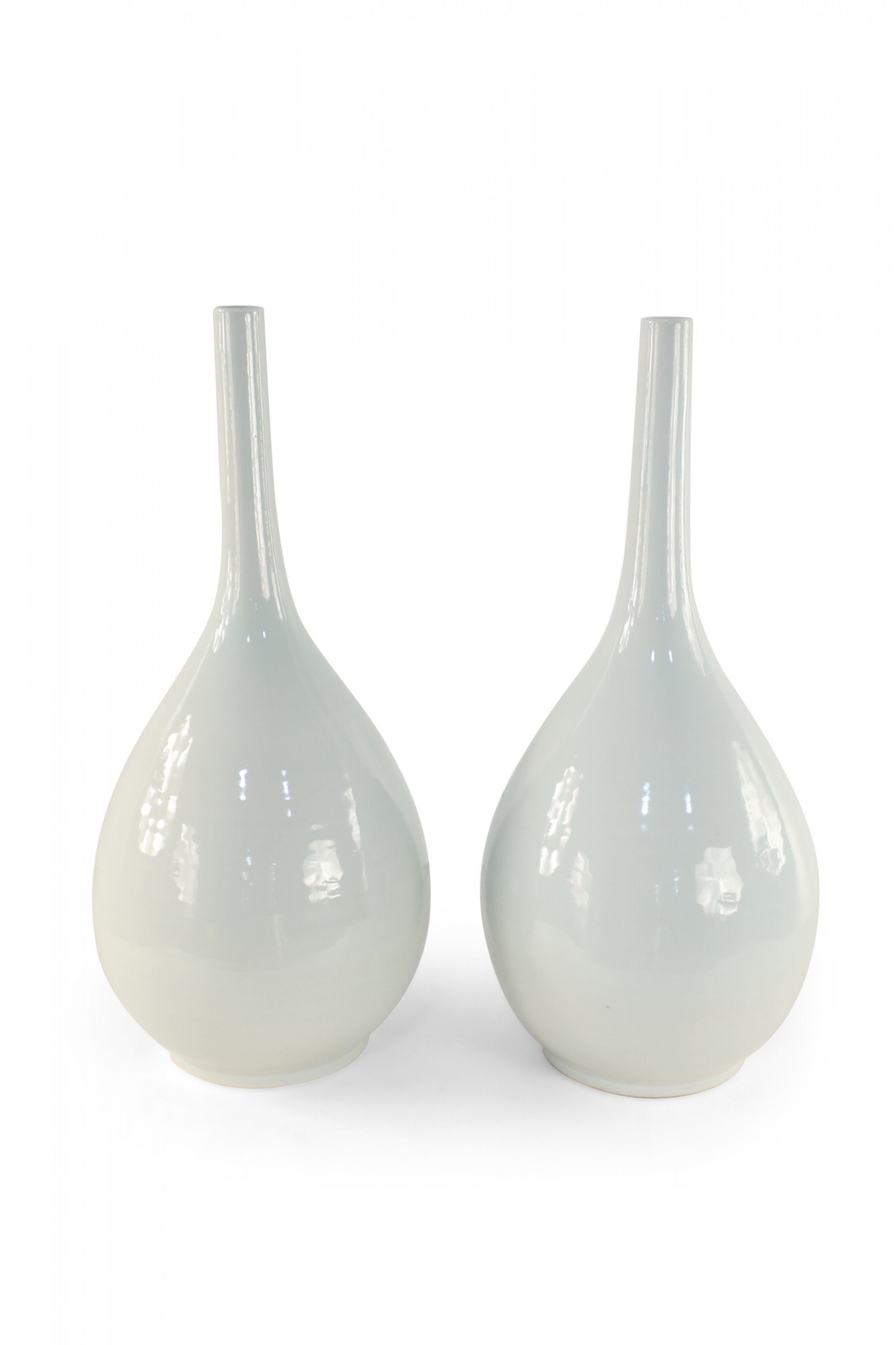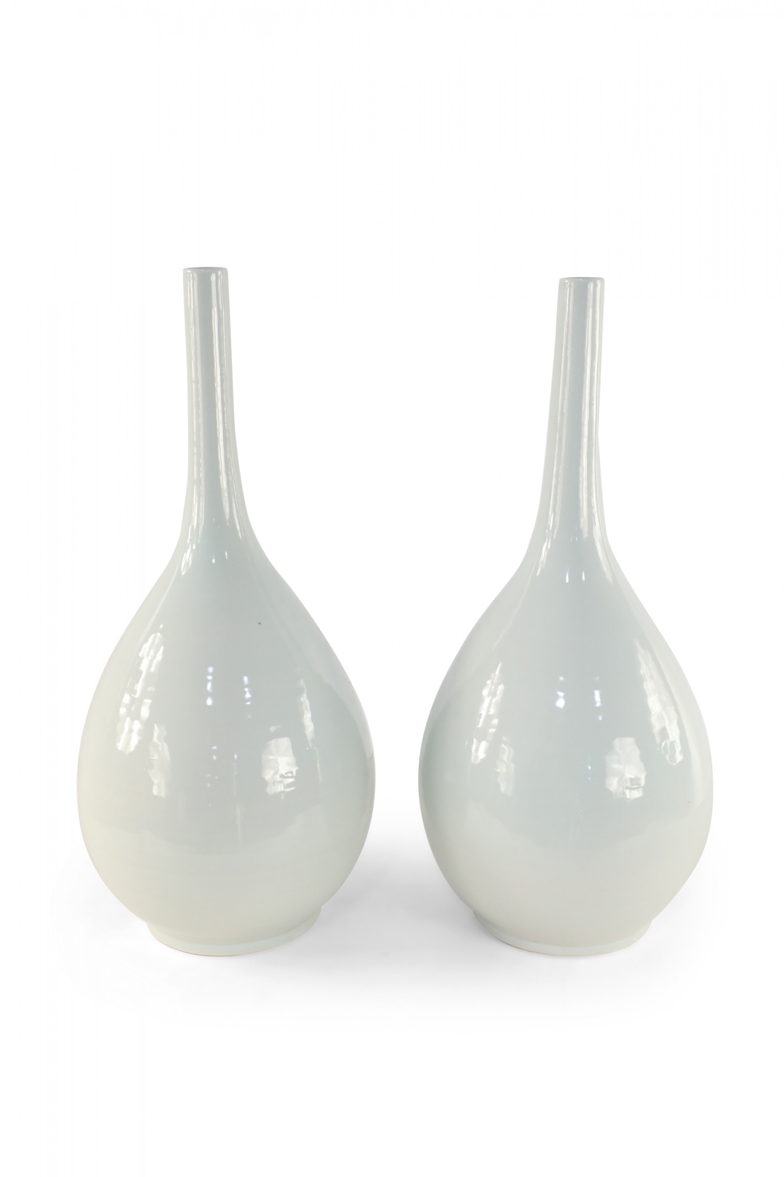 PAIR of Antique Chinese (Mid 20th Century) white porcelain gall bladder form vases, named for their resemblance to the shape of the organ, with bulbous bottoms and thin, delicate necks (PRICED AS A PAIR)..