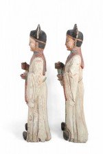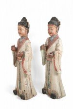 Pair of Chinese Wooden Civil Officer Statues