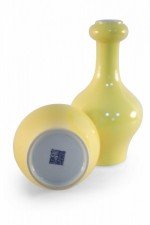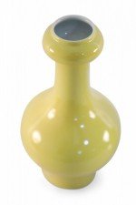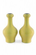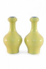 Pair of Chinese Yellow Garlic-Mouthed Porcelain Vases