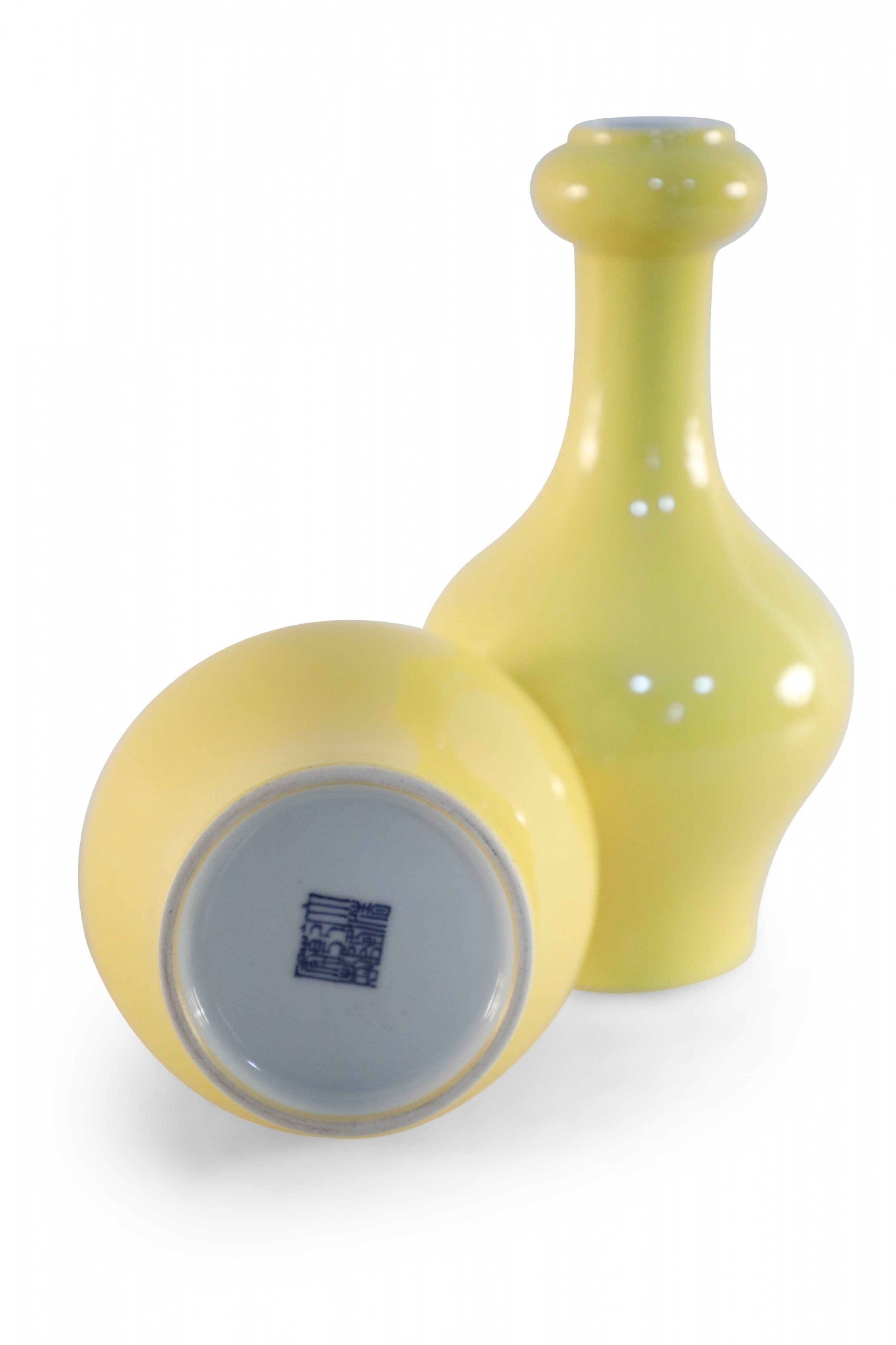 PAIR of Antique Chinese (Late 19th Century) yellow porcelain vases with garlic-mouth forms (mark on bottom, see photos) (PRICED AS PAIR)..