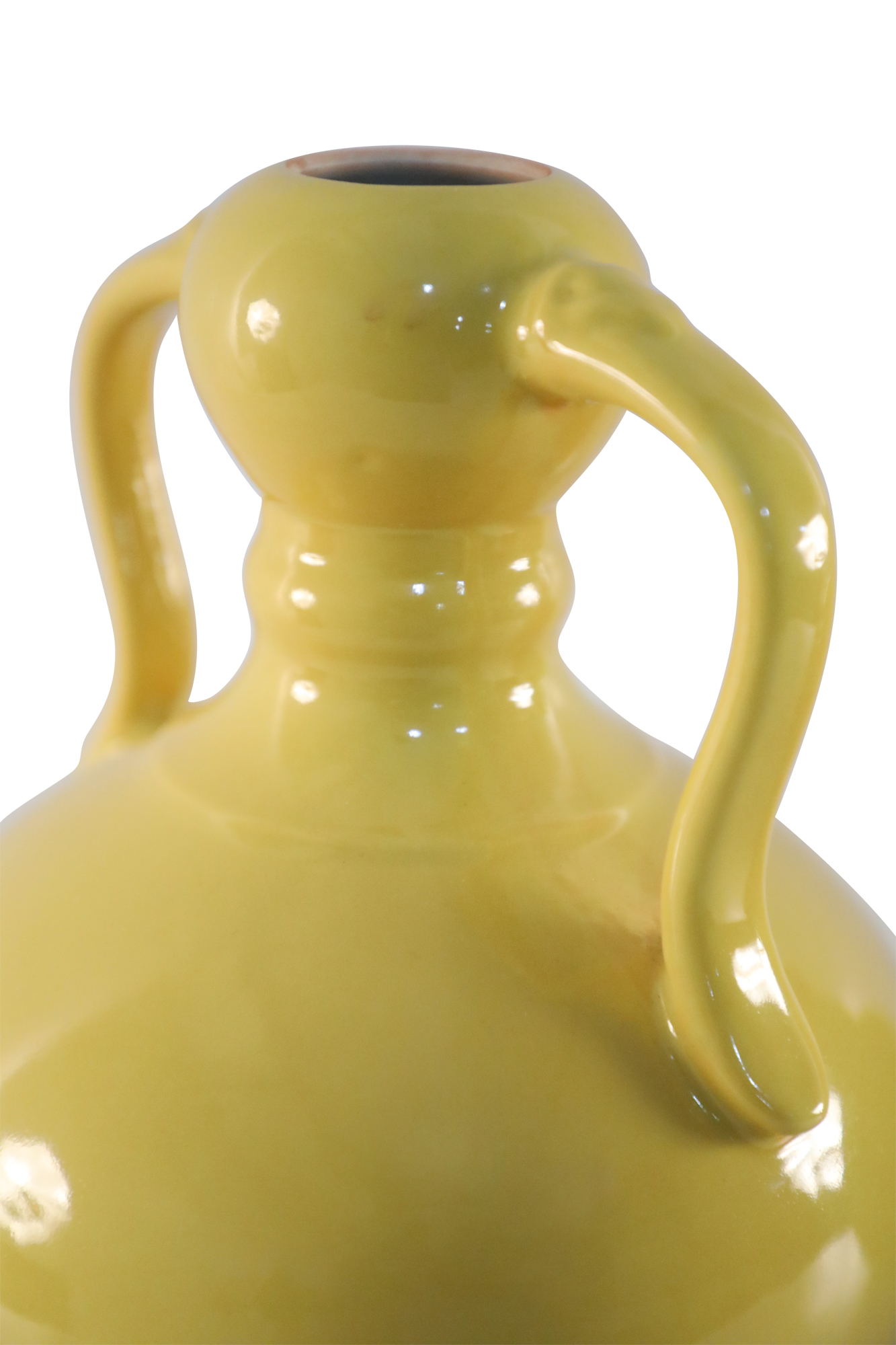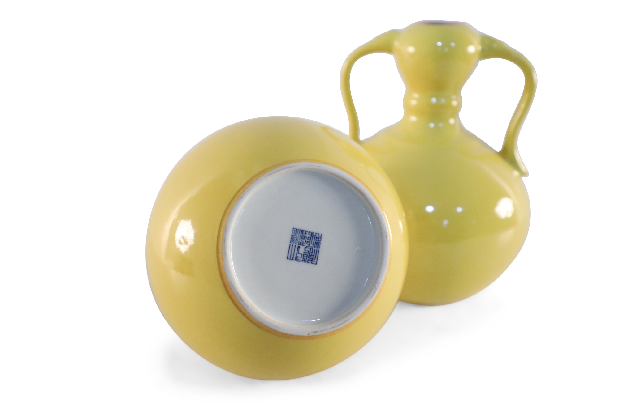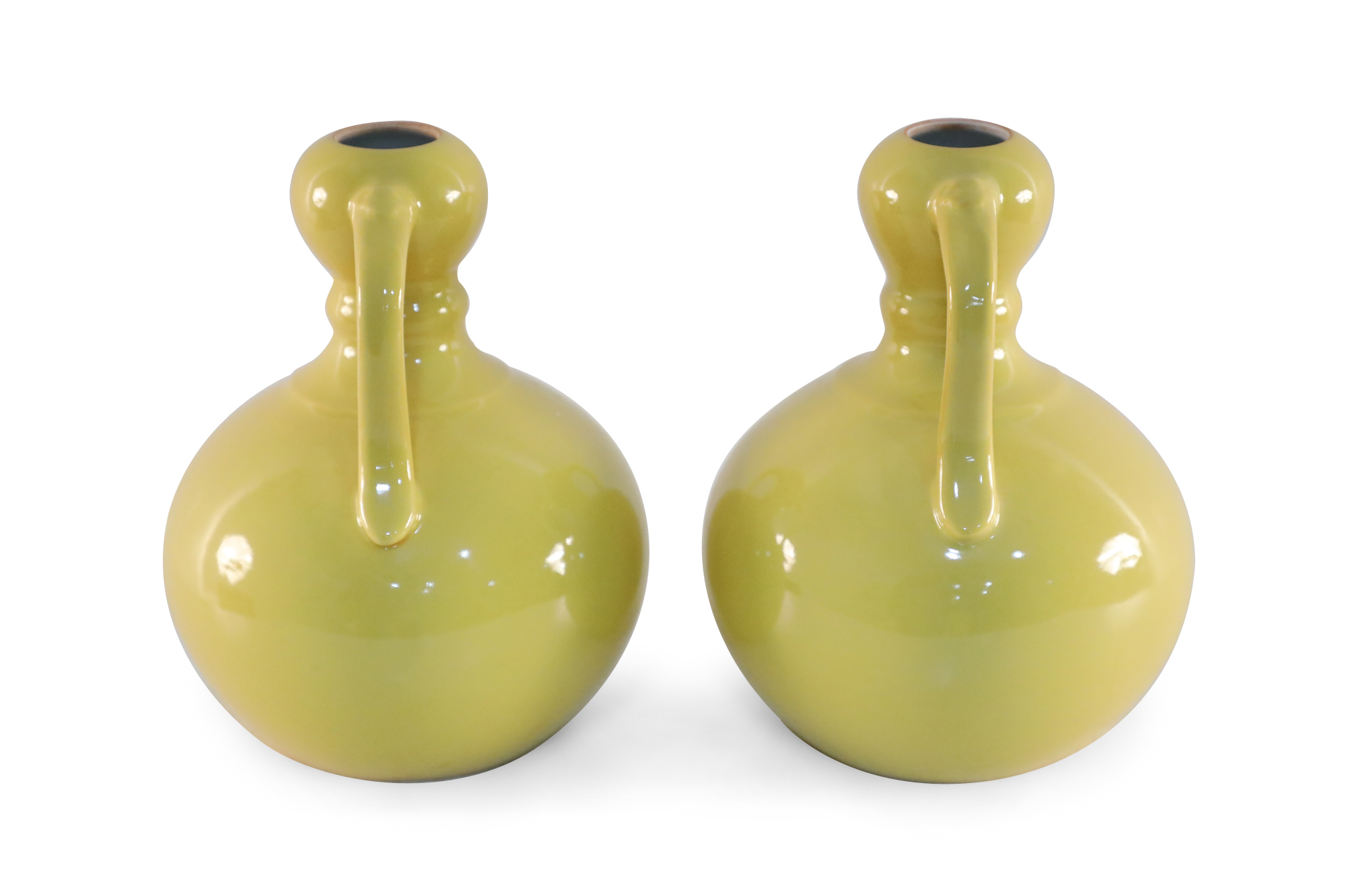 PAIR of Antique Chinese (Late 19th Century) yellow porcelain vases with gourd forms and handles (mark on bottom, see photos) (PRICED AS PAIR)..