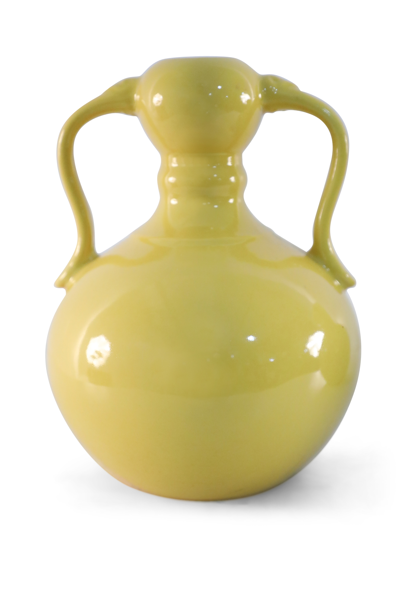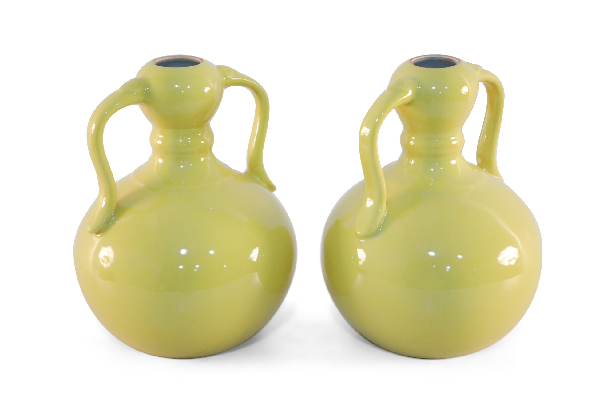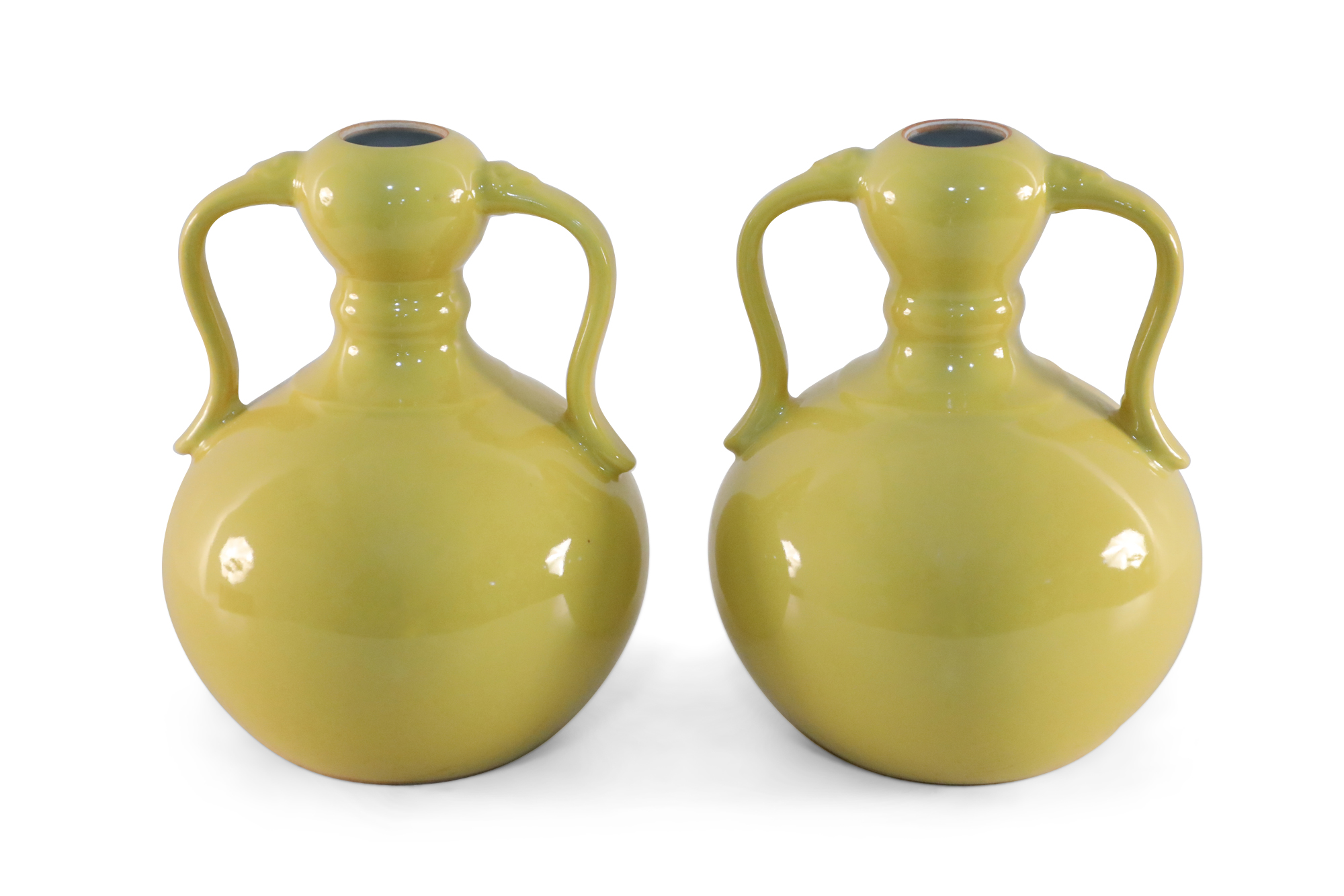 Pair of Chinese Yellow Gourd Shaped Double Handled Porcelain Vases