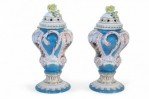 Pair of Herend Hungarian Decorated and Lidded Porcelain Urns