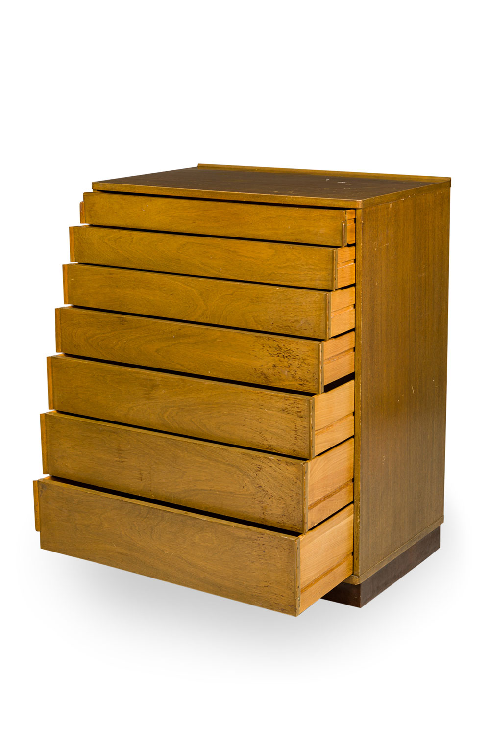 Style: Mid-Century Materials & Techniques: Walnut, wood Category: Cabinets & Case Goods, Bedroom Good; Wear consistent with age and use