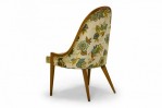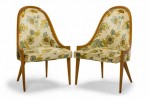 Pair of Harvey Probber American Mid-Century Floral Print 'Gondola' Mahogany Pull Up Side Chairs