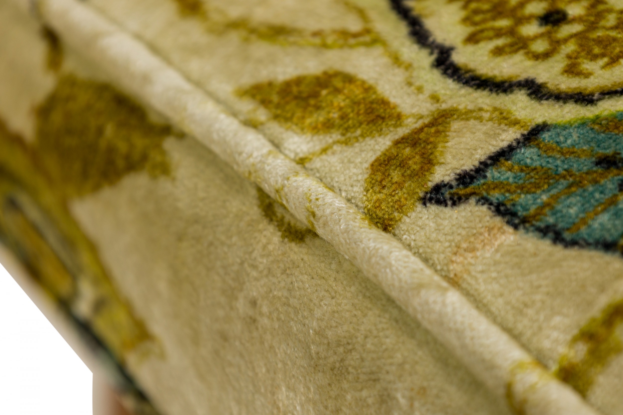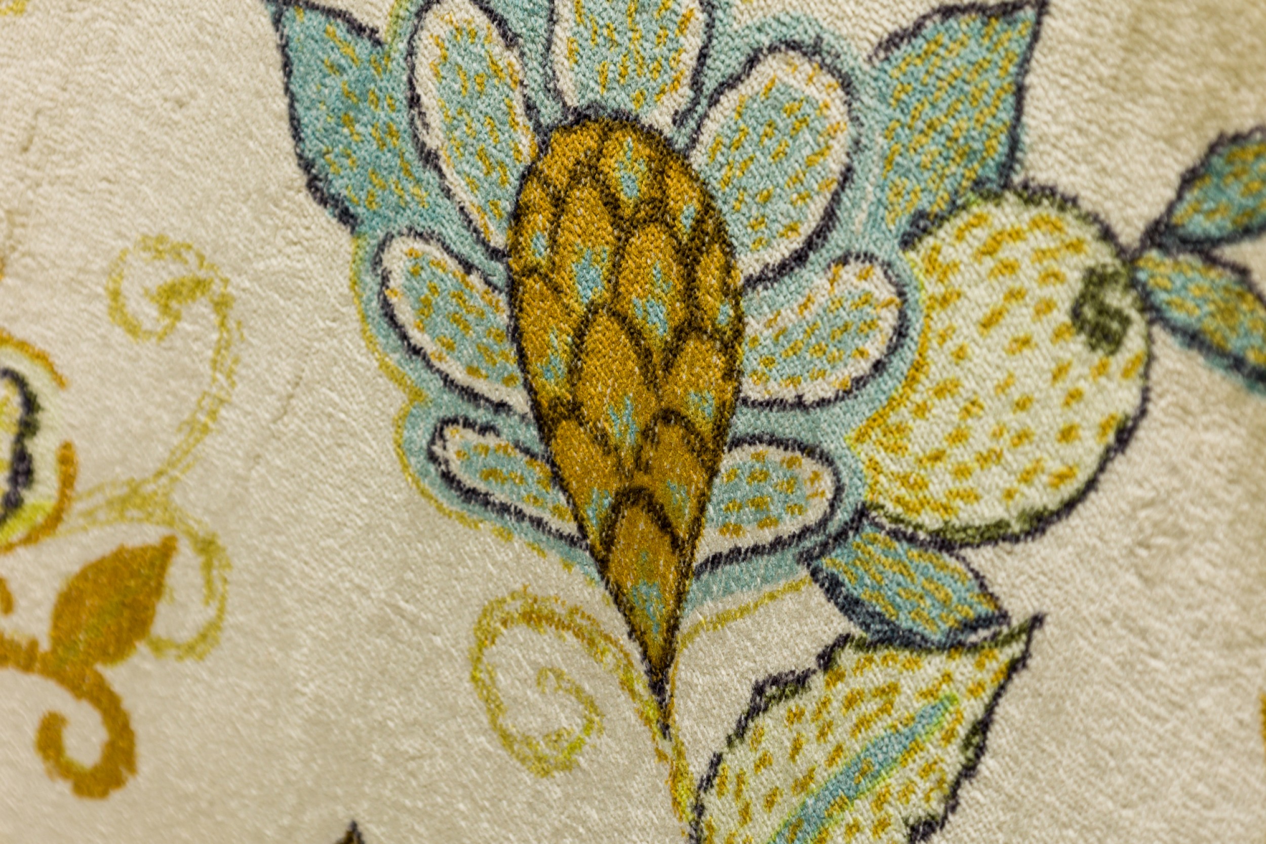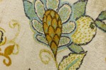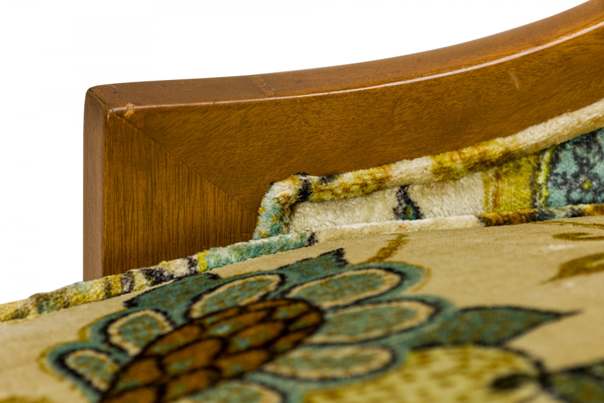 Style: Mid-Century Materials & Techniques: Fabric, mahogany, upholstered, wood Category: Seating Good; Wear consistent with age and use