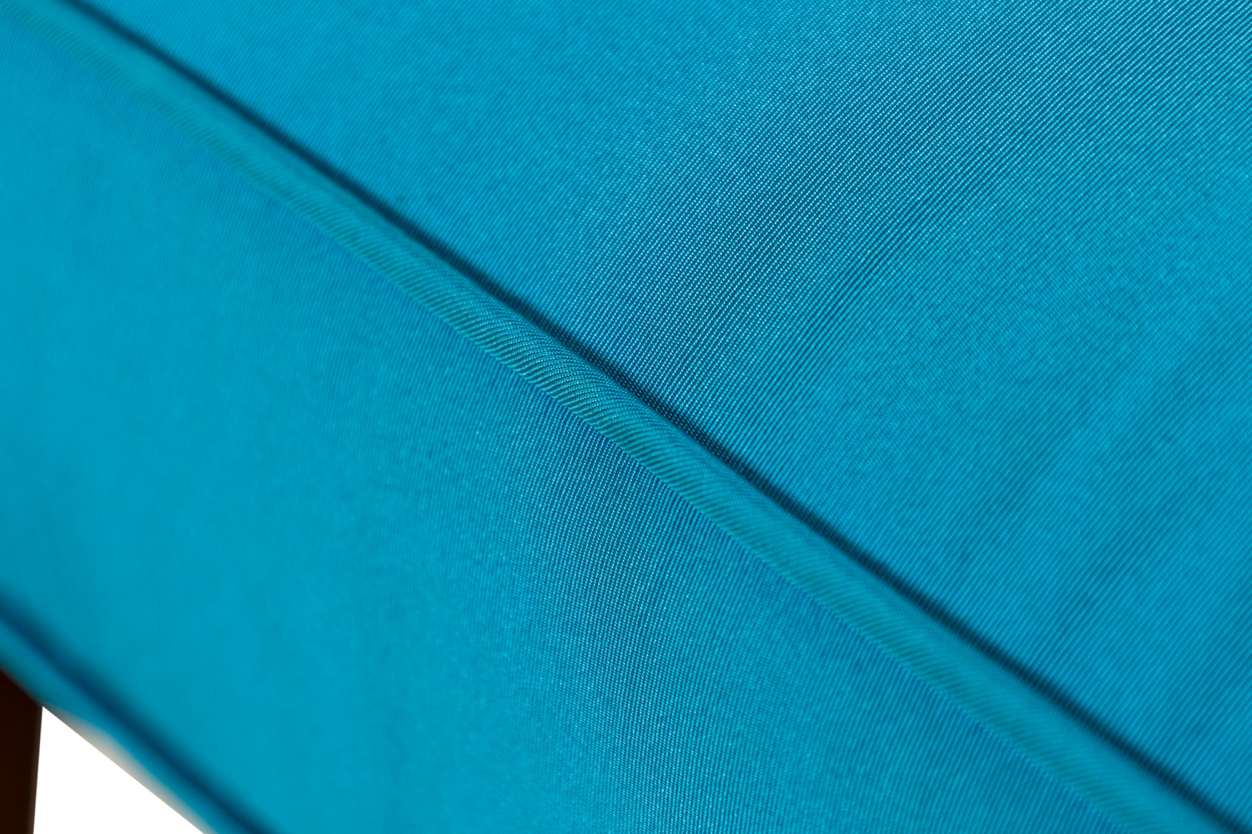 PAIR of American Mid-Century 'Gondola' pull up / side chairs with curved mahogany frames and peacock blue upholstered seat backs and cushions, resting on four tapered mahogany dowel legs. (HARVEY PROBBER)(PRICED AS PAIR)(Similar pieces: DUF0424-DUF0426).