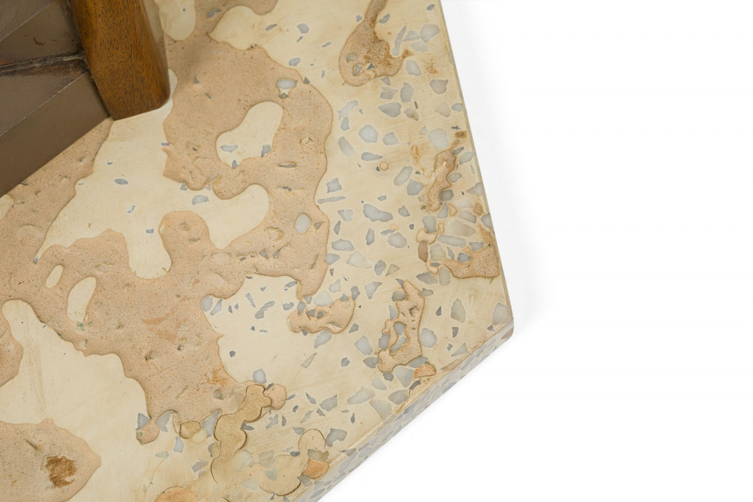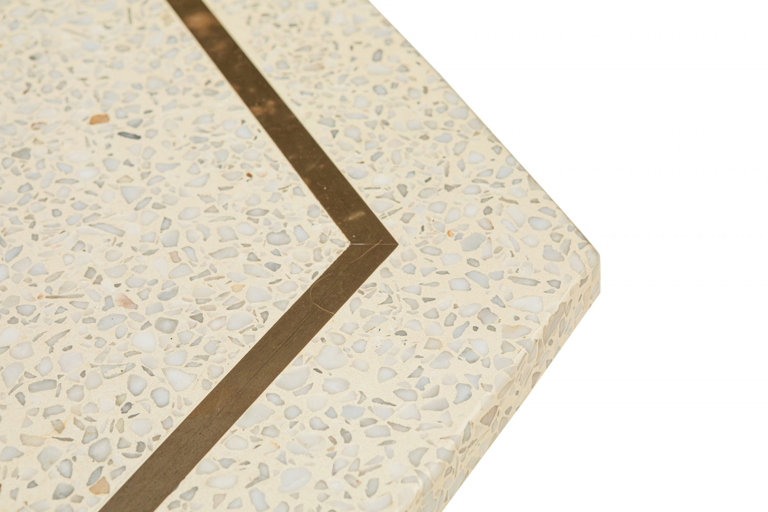 2 Harvey Probber Mid-Century White Terrazzo and Bronze Inlay Hexagonal End / Side Tables