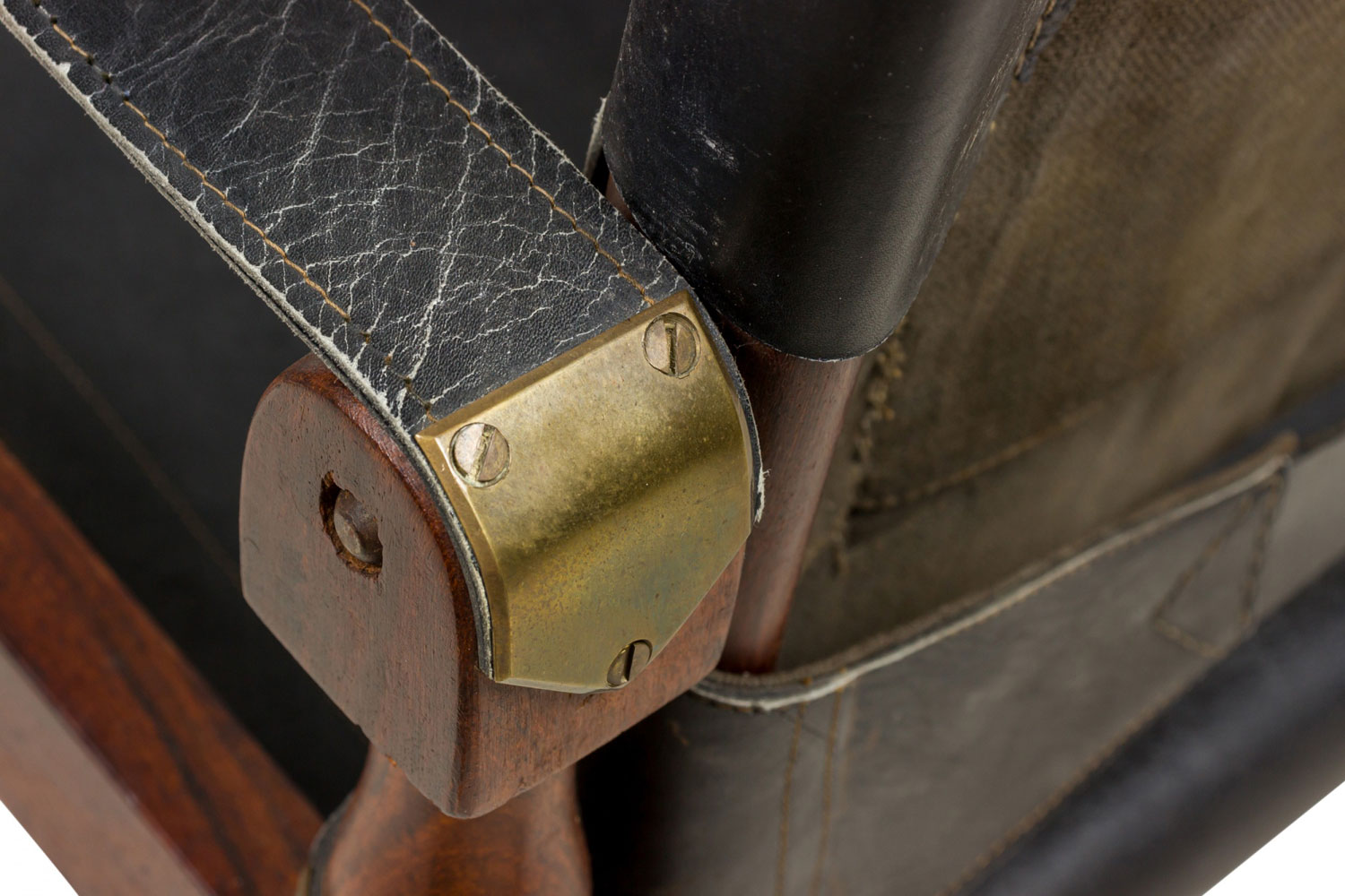 Pair of Hayat Brothers Pakistani Mid-Century 'Roorkee' Safari Black Leather Sling Campaign Chairs