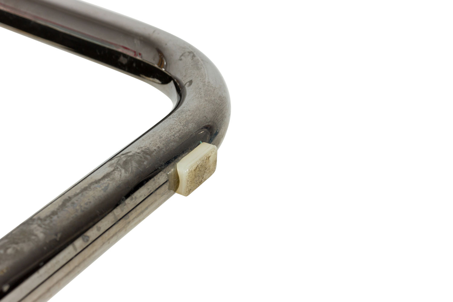 Style: Mid-Century Materials & Techniques: Chrome, leather, metal Category: Seating Good; Wear consistent with age and use