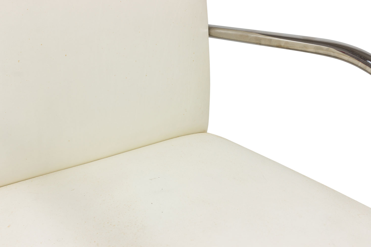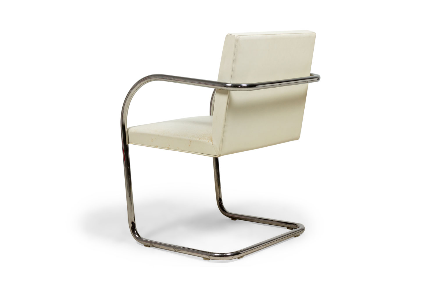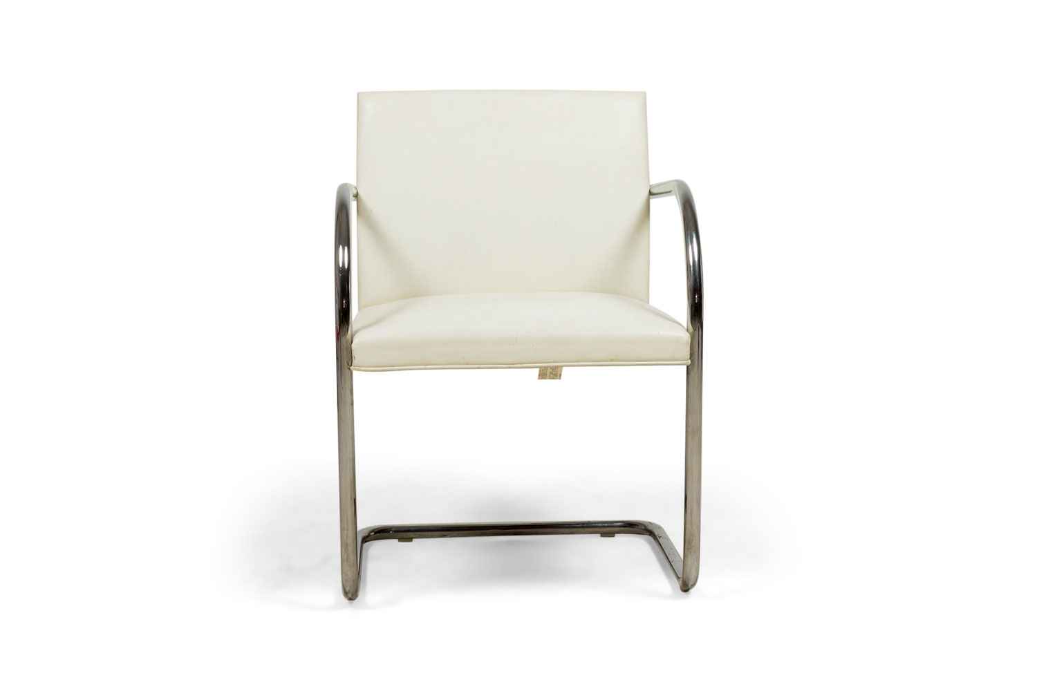 PAIR of American Mid-Century 'Brno' armchairs with chrome tube frames and white leather upholstery. (MIES VAN DER ROHE FOR KNOLL INTERNATIONAL)(PRICED AS PAIR)