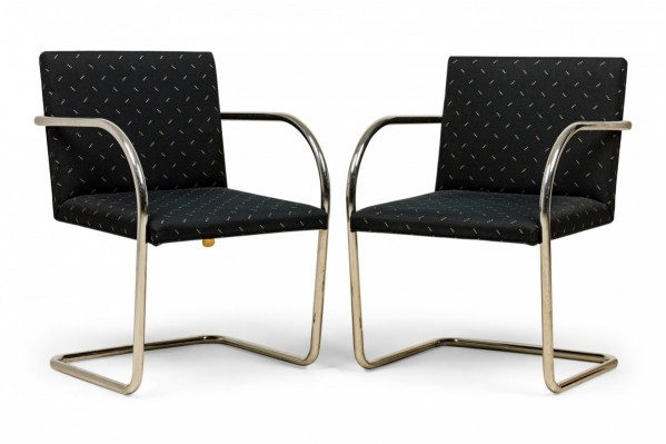PAIR of American Mid-Century 'Brno' armchairs with chrome tube frames and white leather upholstery. (MIES VAN DER ROHE FOR KNOLL INTERNATIONAL)(PRICED AS PAIR).